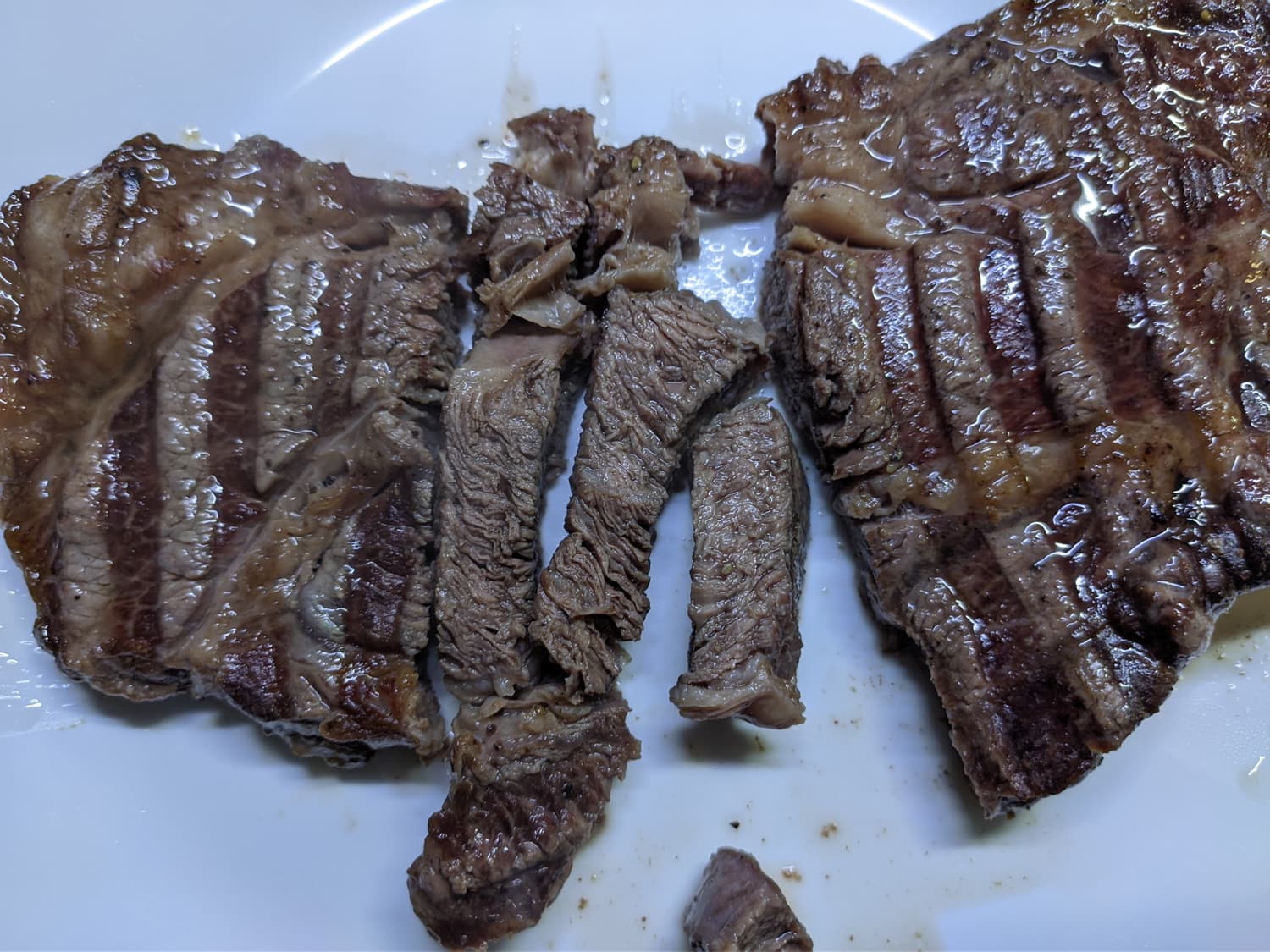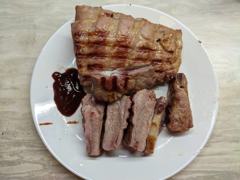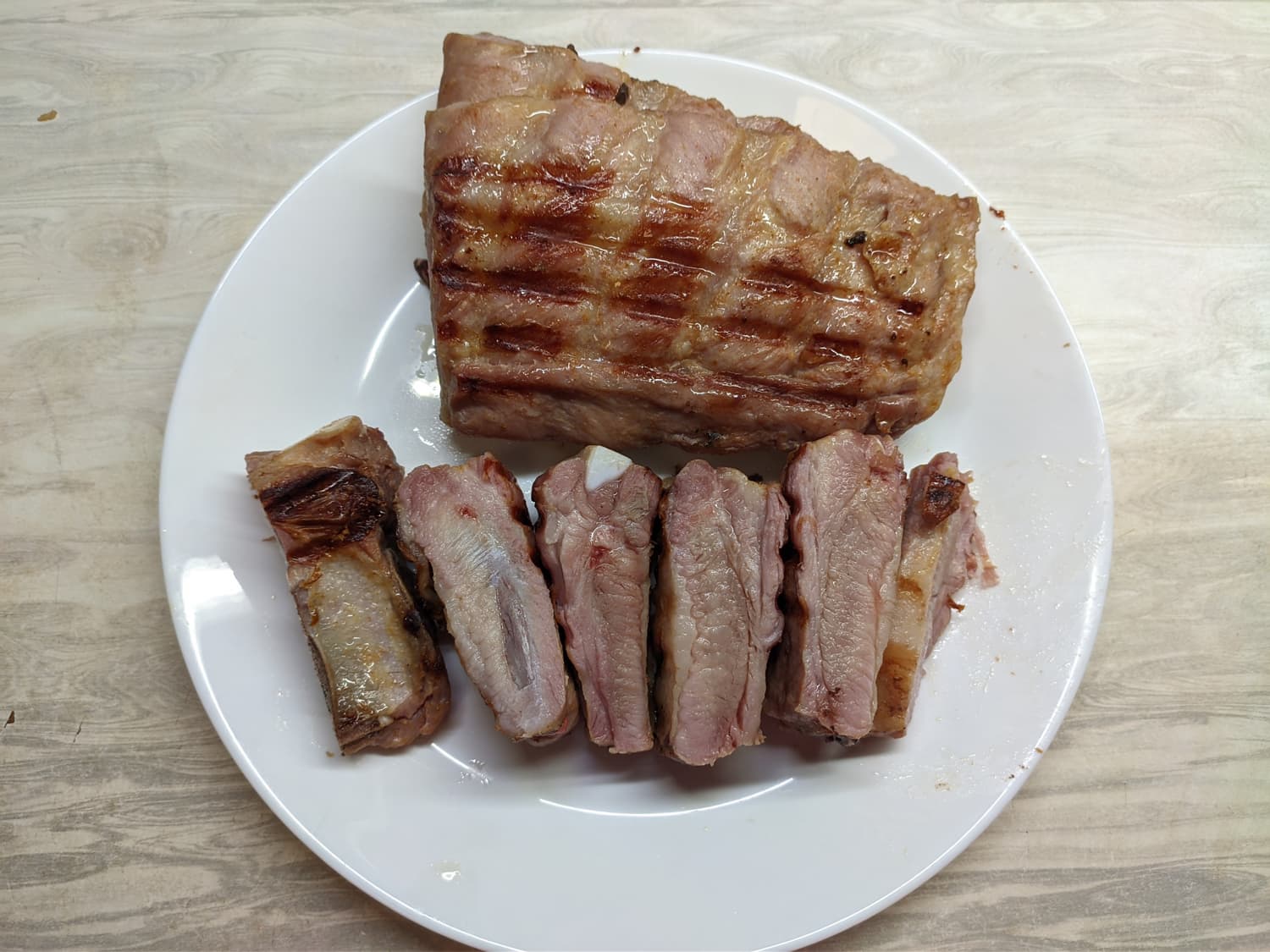 Выглядит почти готовым. Разрежем ребра и проверим прожарку. Идеально!