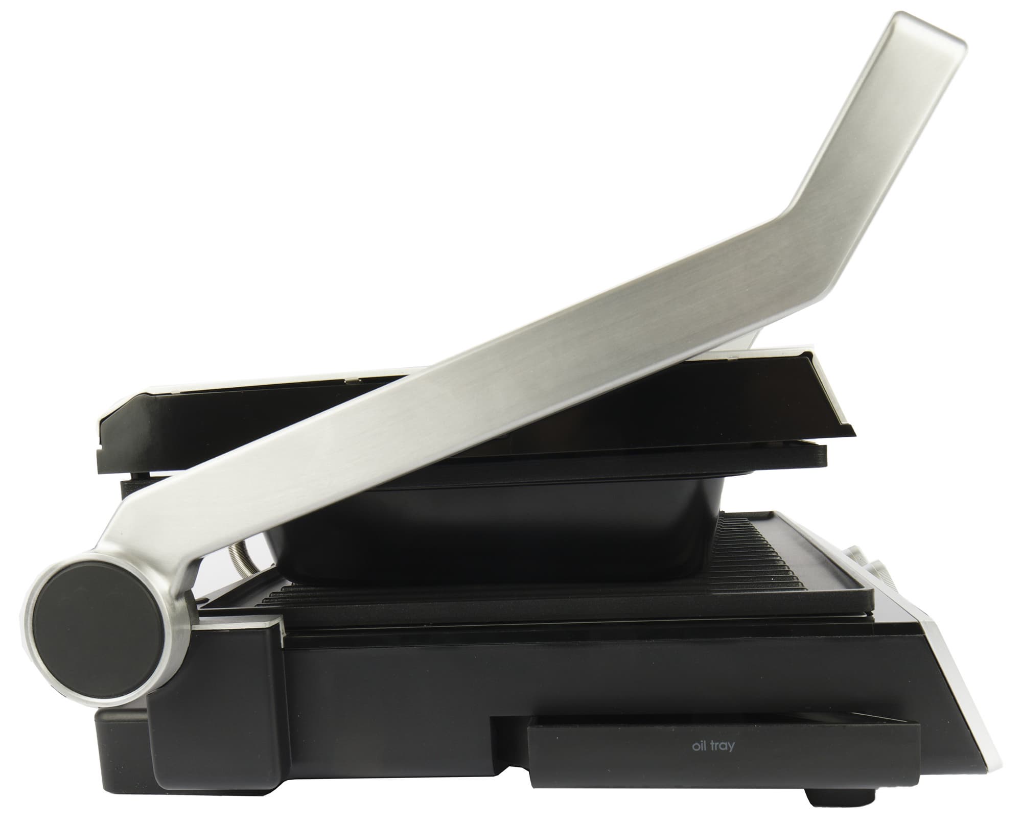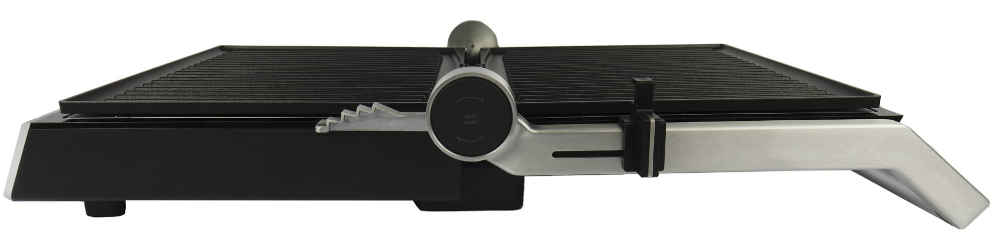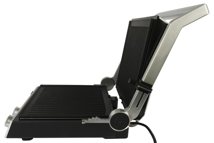 В общем, перед нами предстала вполне стандартная модель, «доведенная до ума». В ней устранен ряд неудобных моментов (типа лотка для жира, который нужно было извлекать с тыльной стороны прибора), гриль укомплектован качественными нагревательными панелями и сохранил довольно простое управление. На наш взгляд, впрочем, управление слишком уж простое. Как минимум мы хотели бы увидеть у регулятора нагрева шкалу с указанием температур, а не безликие режимы Med или High, о смысле которых без инструкции догадаться не так-то просто.
