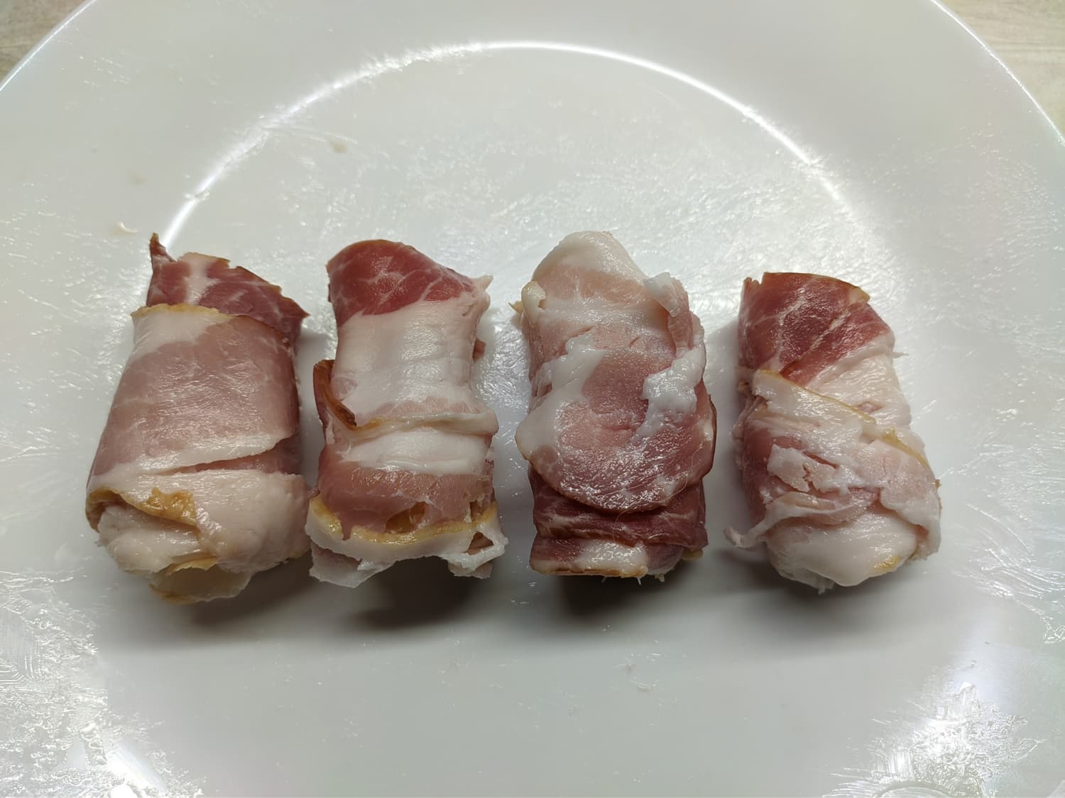 Быстрая и простая закуска — бекон с сыром сулугуни.