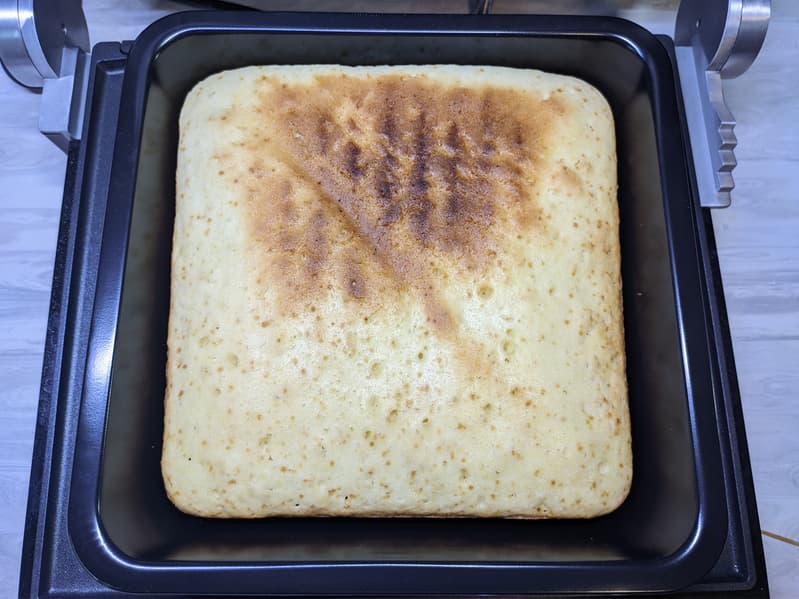 Некоторая неравномерность нагрева, конечно, присутствует, однако в ходе тестирования она оказалось незаметной. Исключение — приготовление блюд в металлической форме. Форма прогревается чуть сильнее ближе к дальней стороне гриля, и в некоторых случаях это заметно невооруженным глазом.