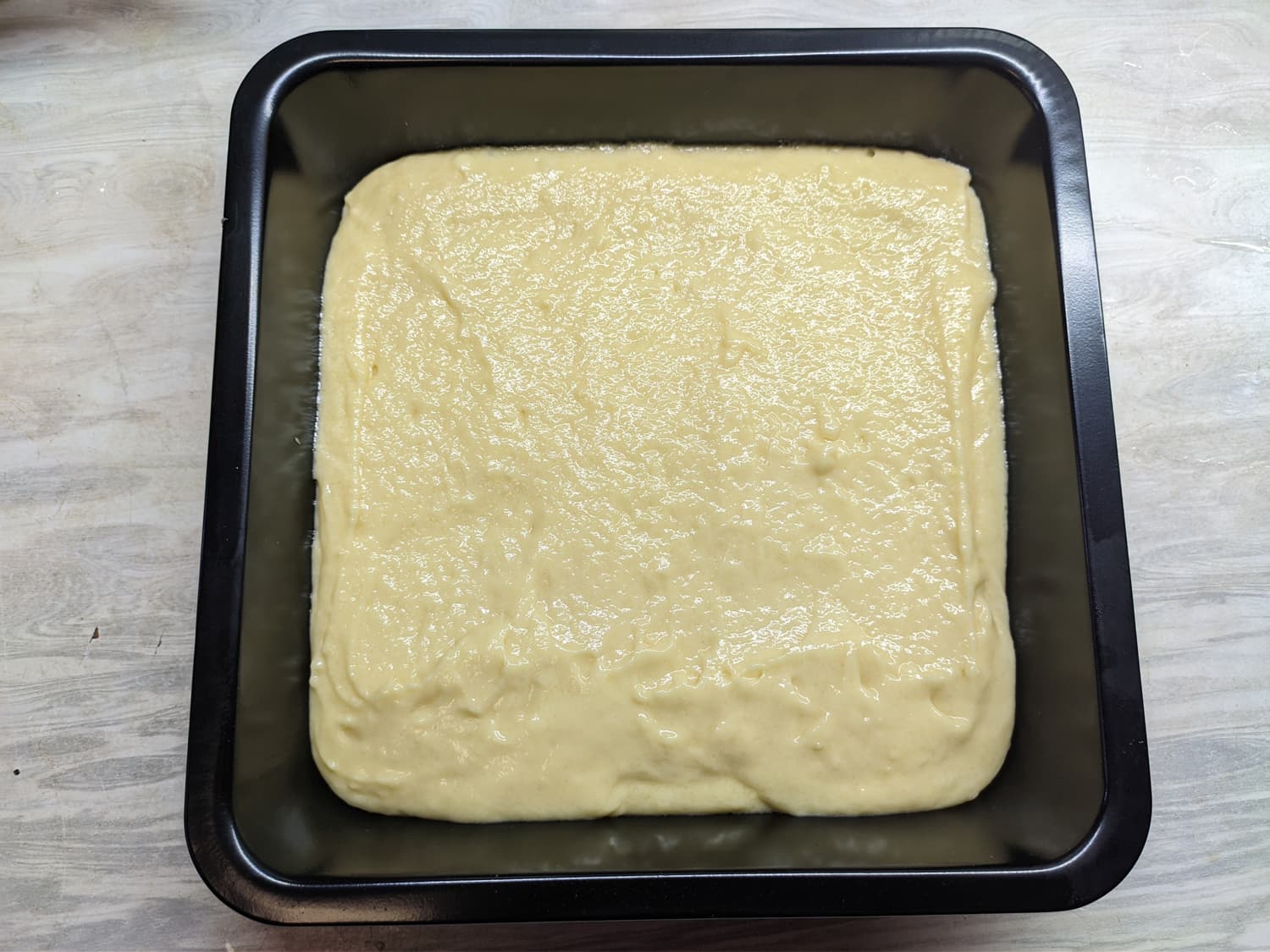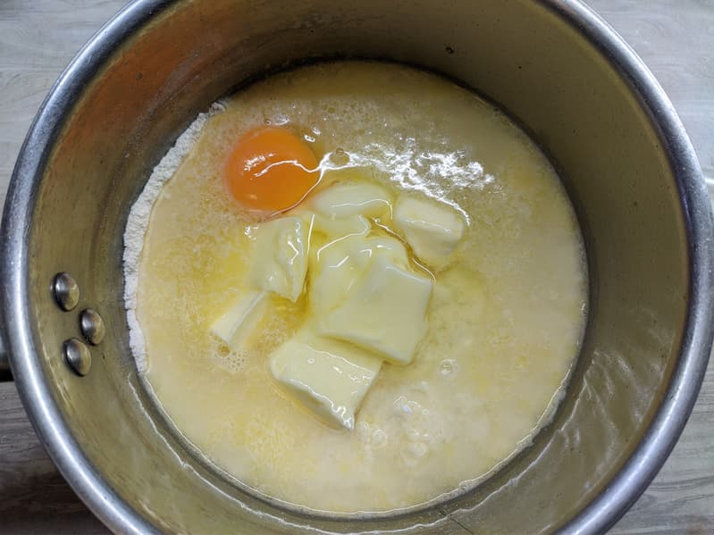 Мы взяли смесь, добавили масло, воду и яйцо и перемешали до состояния однородной массы.