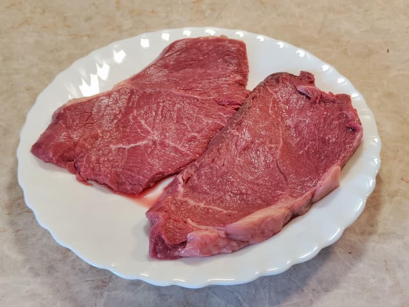 Познакомившись с грилем и его характером, можно приступить к приготовлению говяжьего стейка. Для опыта мы взяли два куска тонкого края, один весом в 486 г, второй чуть поменьше — почти 300 г.
