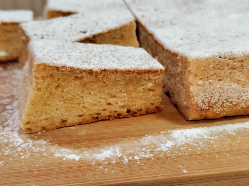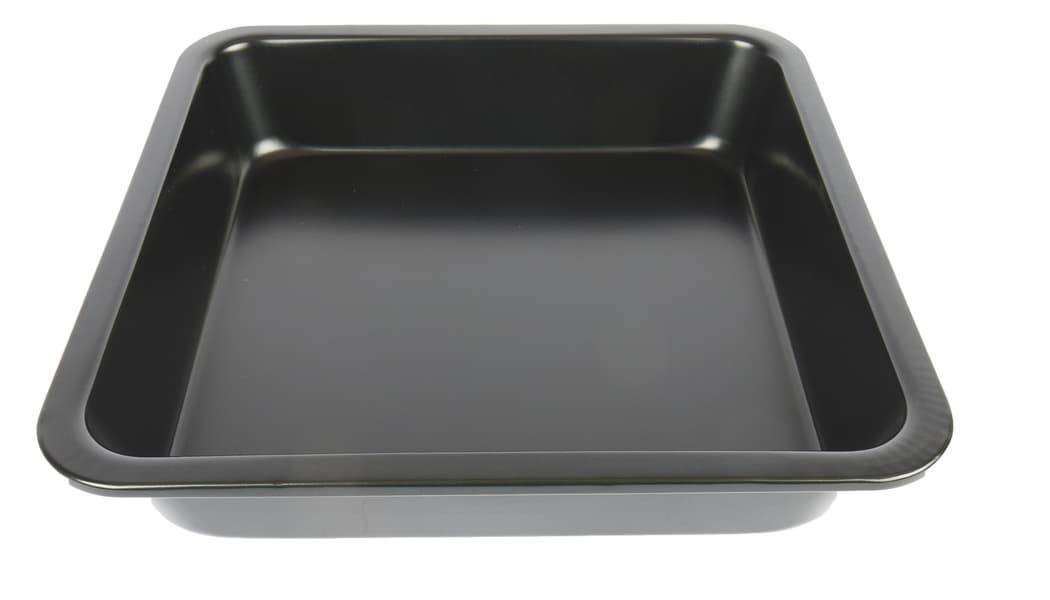 …и квадратной металлической формой для запекания с антипригарным покрытием. Ширина формы — 22 см, высота — 5 см.