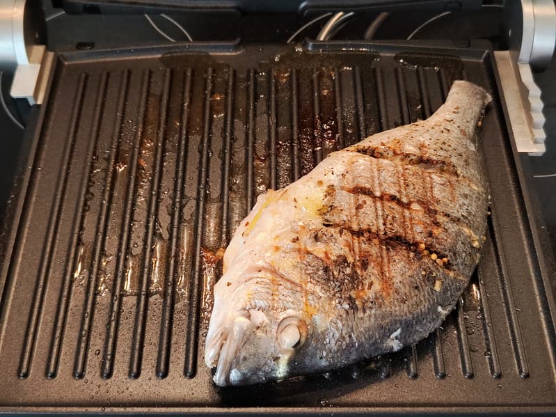 Отметим, как легко рыба отделялась от панели, ни кусочка не оторвалось и не прилипло к жарочной поверхности.