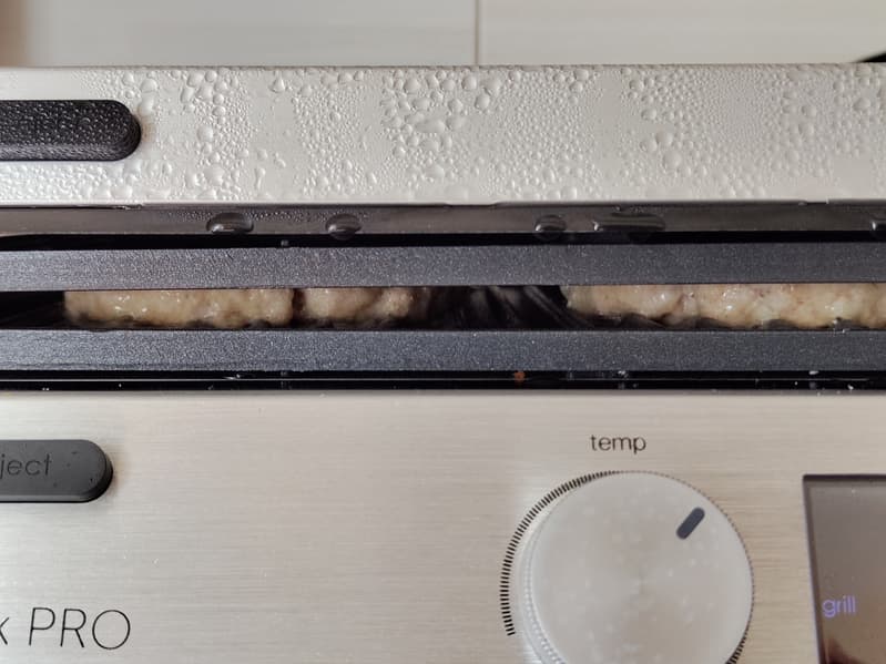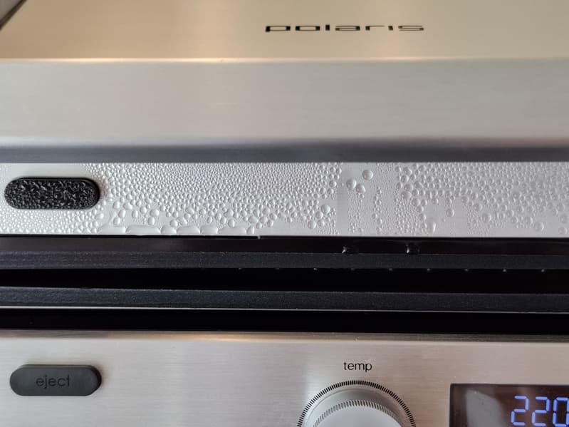 Также при жарке влажных сочных продуктов конденсат скапливался и на передней стороне верхней части гриля.
