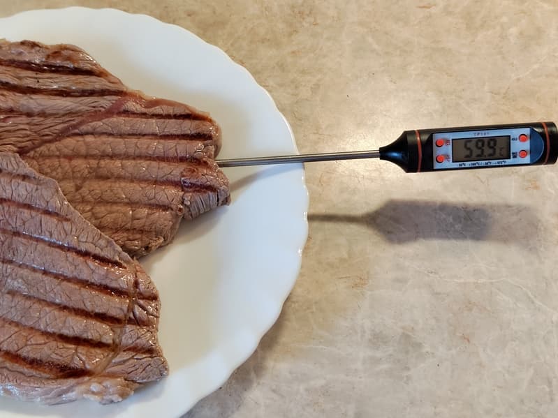 Для достижения мясом изнутри температуры 60 °C хватило двух с половиной минут.