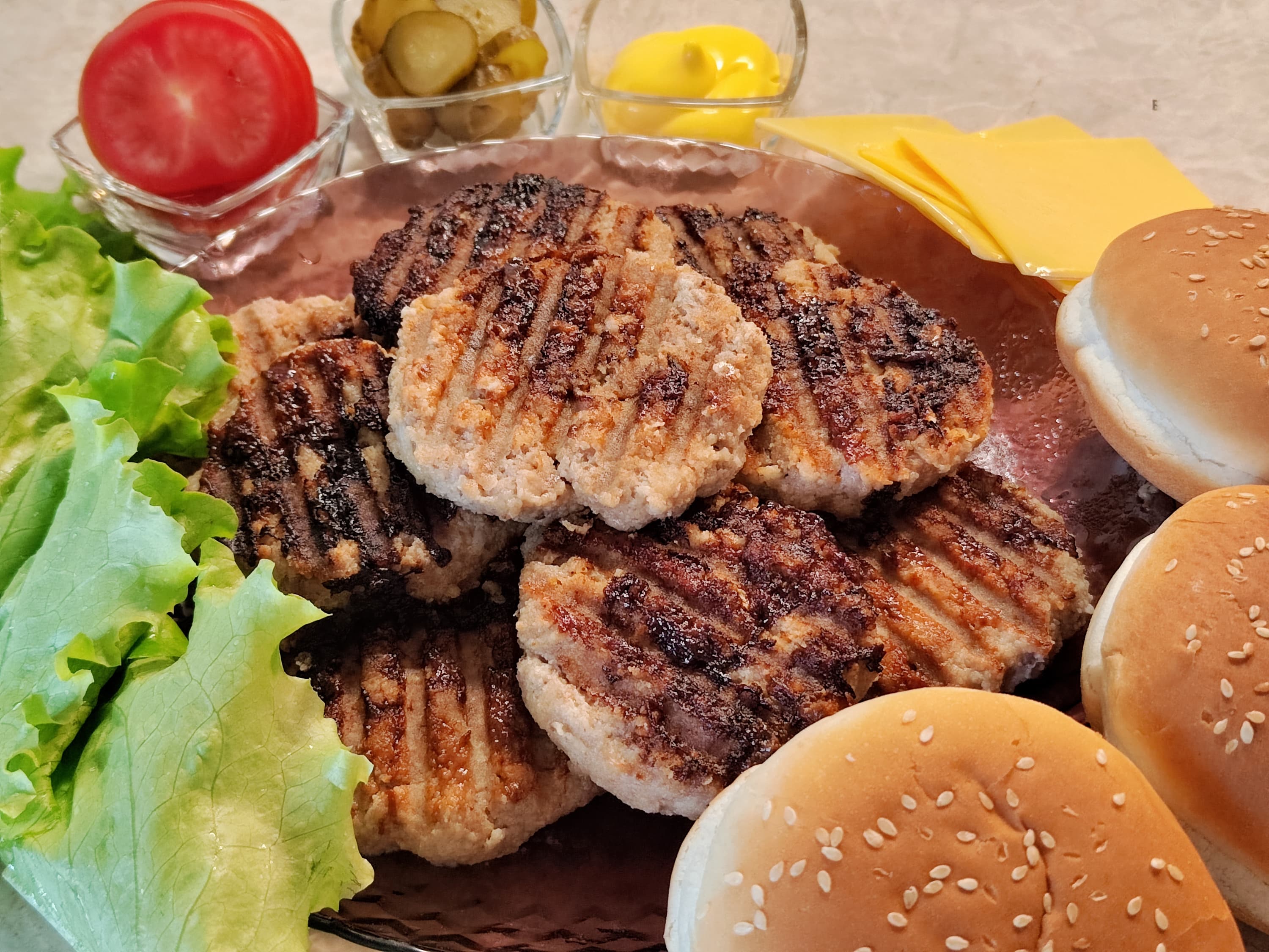 Данный тест с самого начала пошел не в том направлении, в котором планировался. Изначально мы хотели просто поджарить котлеты, но формуя и придавливая их, поняли, что котлеты не станут основным блюдом, потому что они просят, прямо-таки настаивают, чтобы их положили внутрь булочки, сопроводив сыром и ломтиками овощей. Ну не счищать же панировку, лучше назвать блюдо не гамбургером, а булочкой с котлетой.