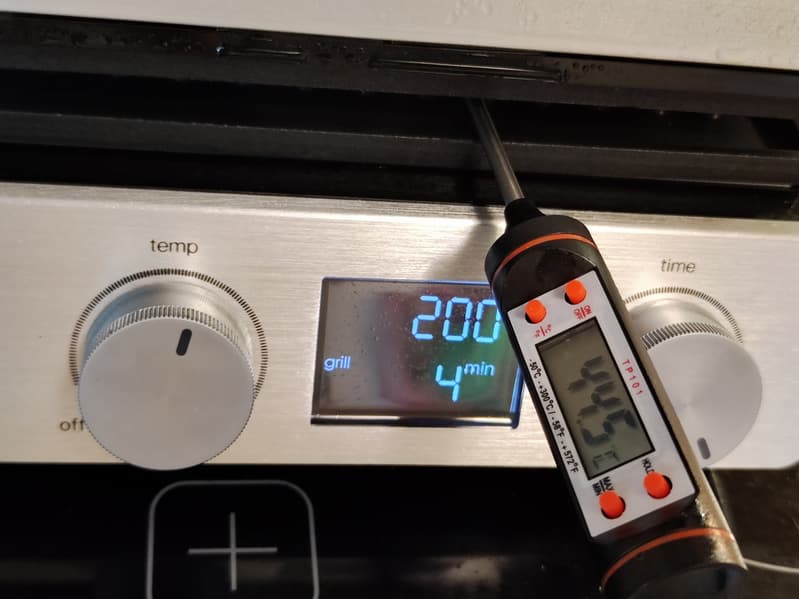 Жарить решили на 200 °C, вставив в толстое место термощуп.