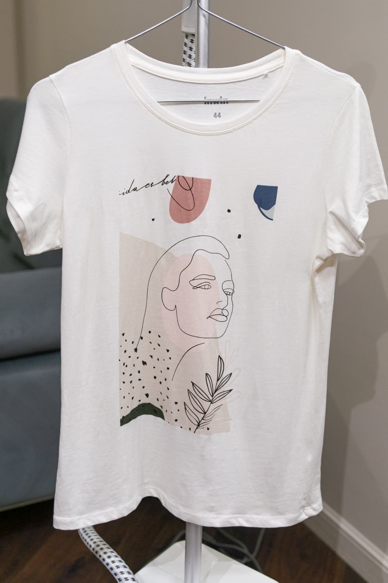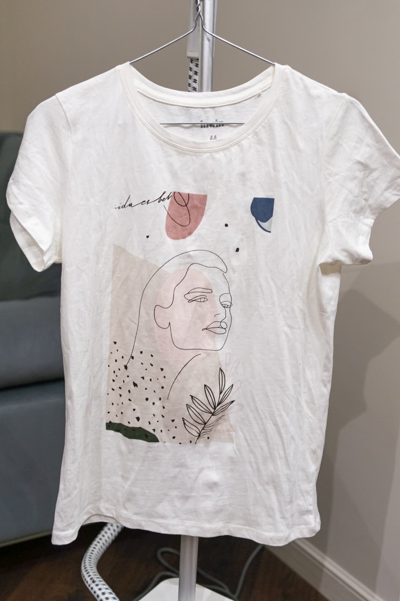 Начали мы традиционно с хлопчатобумажной футболки. В этом тесте нас в первую очередь интересовало, не повредит ли рисунку сильный пар.