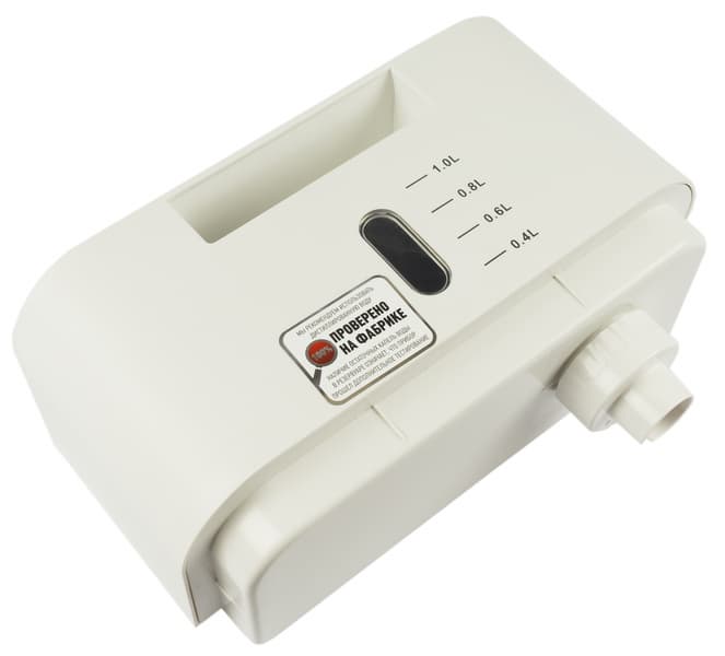 С тыльной стороны установлен съемный резервуар для воды с небольшим смотровым окошком для контроля уровня наполнения.