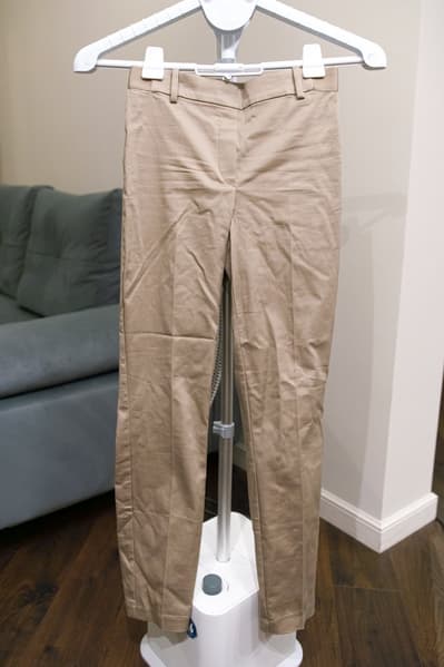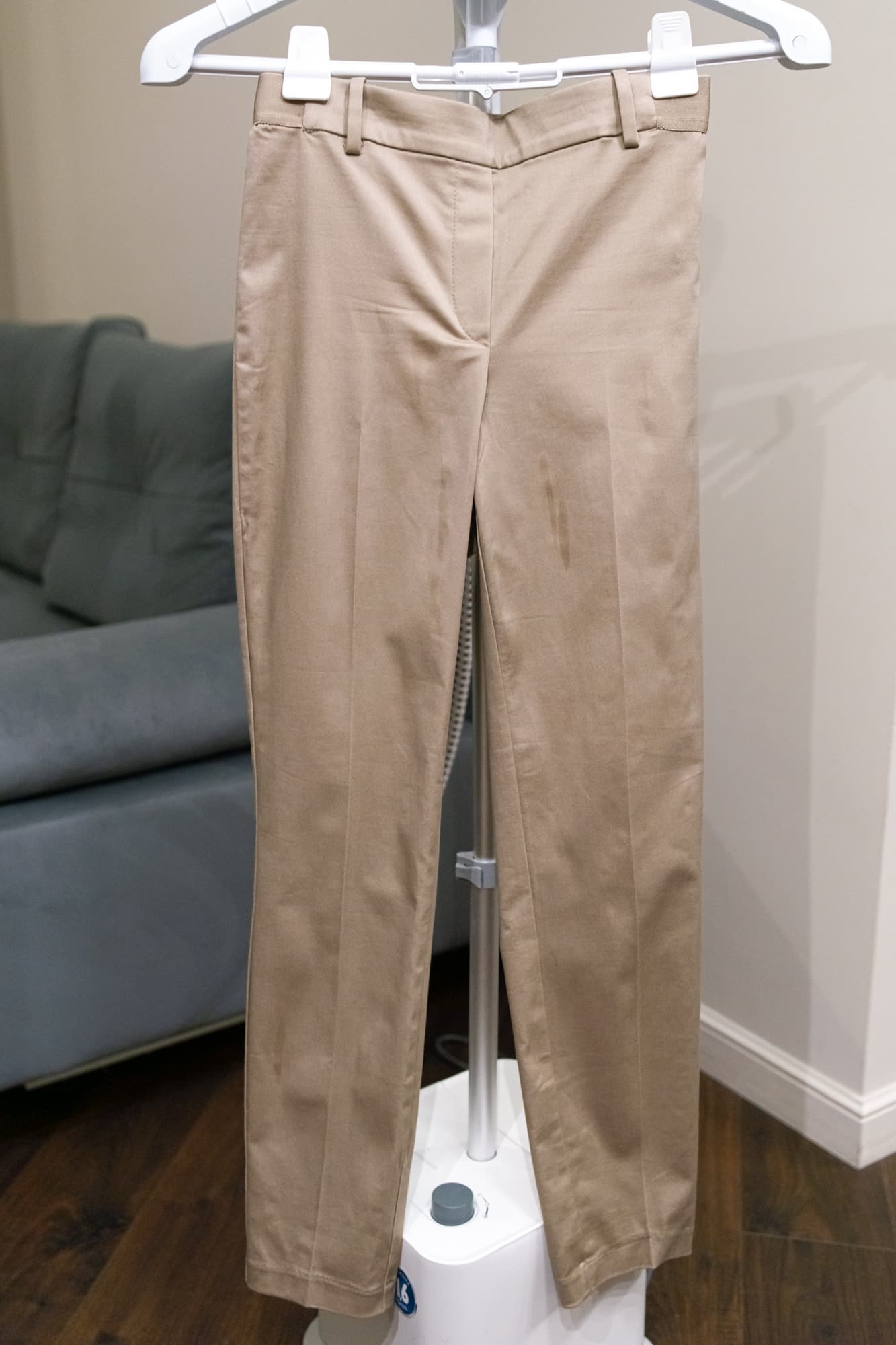 В основном все морщинки с ткани ушли быстро. Проблемой для отпаривателя оказались сильные заломы в виде гармошки в верхней части брюк и пара полосок от хранения в сложенном виде.