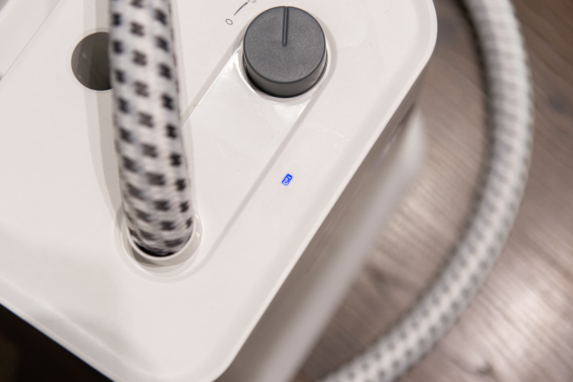 Так как в наличии два уровня мощности пара (как заявлено в документации), управление Polaris PGS 1860VA крайне простое. Установка необходимого режима происходит при помощи трехпозиционного поворотного переключателя с мягким тактовым ходом. При переводе переключателя в положение минимальной или максимальной подачи пара индикатор работы подсвечивается синим.