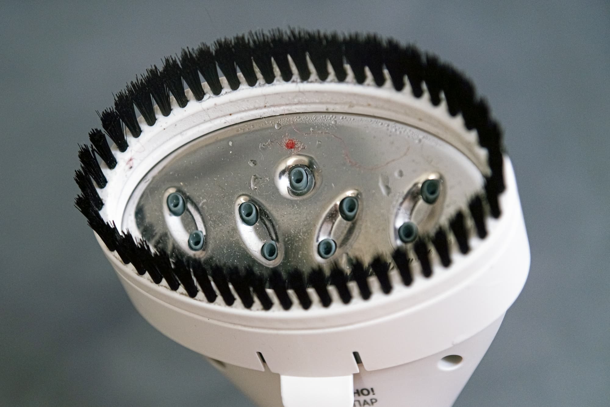 Сама щетка в работе удобна, щетина ее достаточно жесткая. Под воздействием пара и силы прижатия к мебели она не смягчается и не теряет форму. Шерстинки и ворсинки с материала с ее помощью удаляются хорошо.