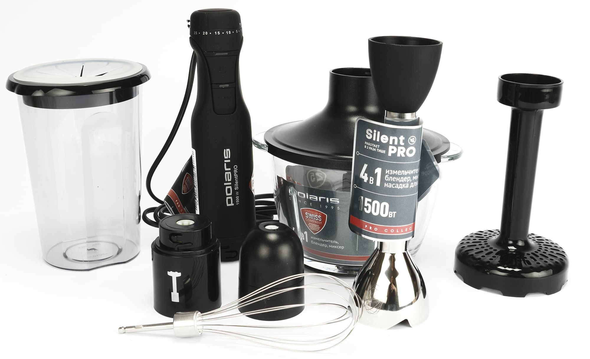 В сравнении с предшественниками из серии Silent Pro у этой модели мы отметили несколько улучшений. Среди них: стеклянная чаша измельчителя с противоскользящей накладкой на дне, двухъярусный нож измельчителя, что положительно сказывается на эффективности, более удобная форма стакана для смешивания и слегка увеличенный диапазон скоростей, здесь он начинается не с 5-й, а с 1-й.