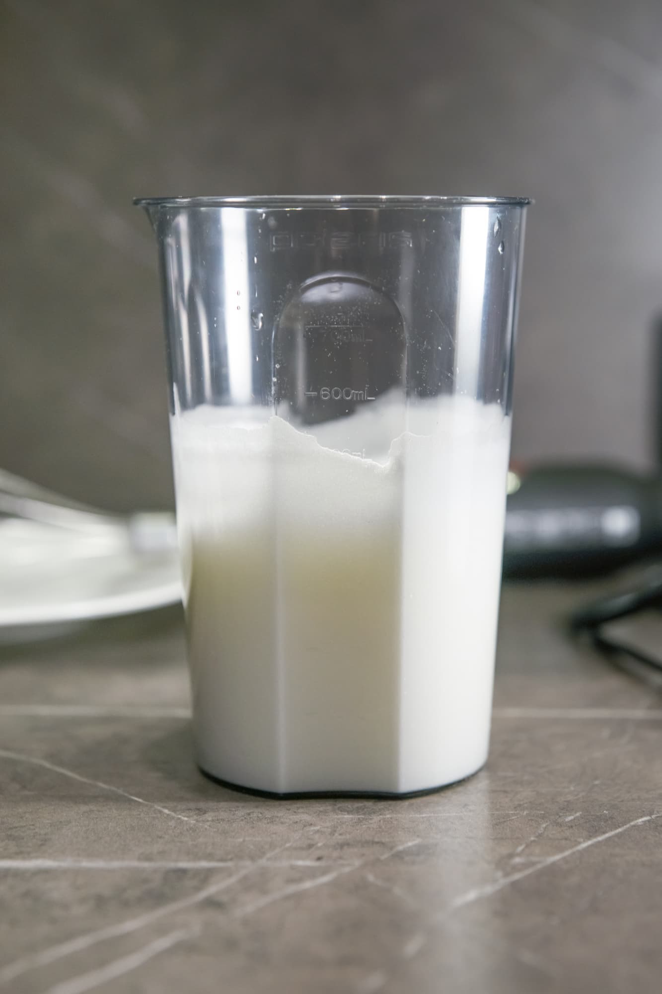 При взбивании венчиком в комплектном пластиковом стакане не рекомендуется помещать в емкость более 4 яиц или 400 мл сливок. Насадка работает очень качественно, эти продукты быстро увеличиваются в объеме и в таком случае просто вылезут за пределы емкости.