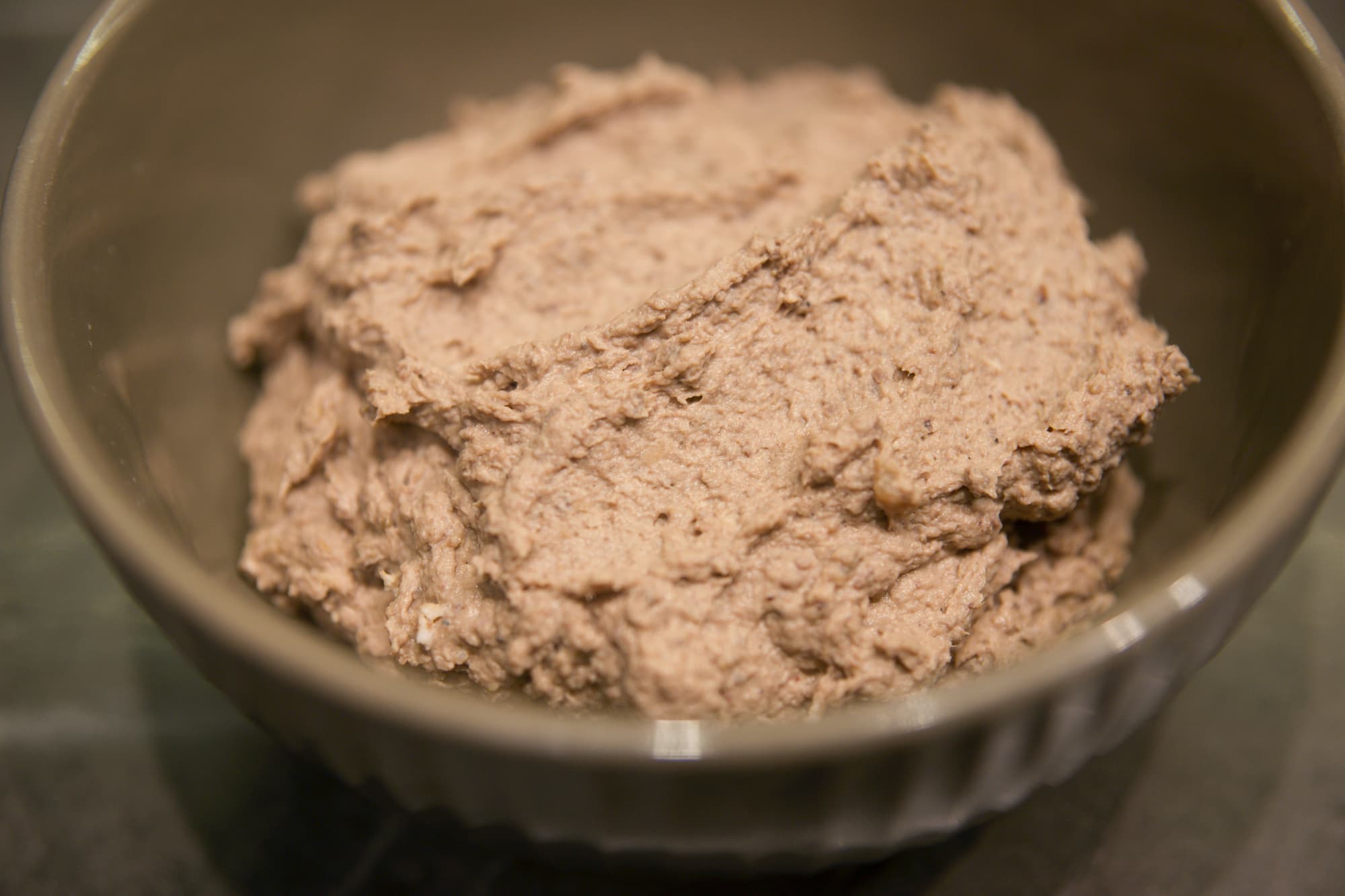 Мы решили сравнить работу измельчителя с насадкой-блендером, поэтому треть ингредиентов поместили в чашу, а остальное перерабатывали в отдельной посудине. Измельчение проходило на 15-й скорости. В обоих случаях у нас получился отличный полностью однородный паштет.