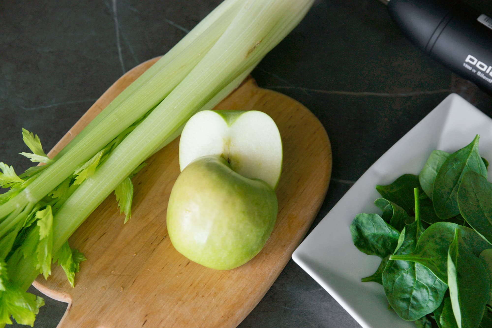 - Смузи из шпината, сельдерея и зеленого яблока (блендер)