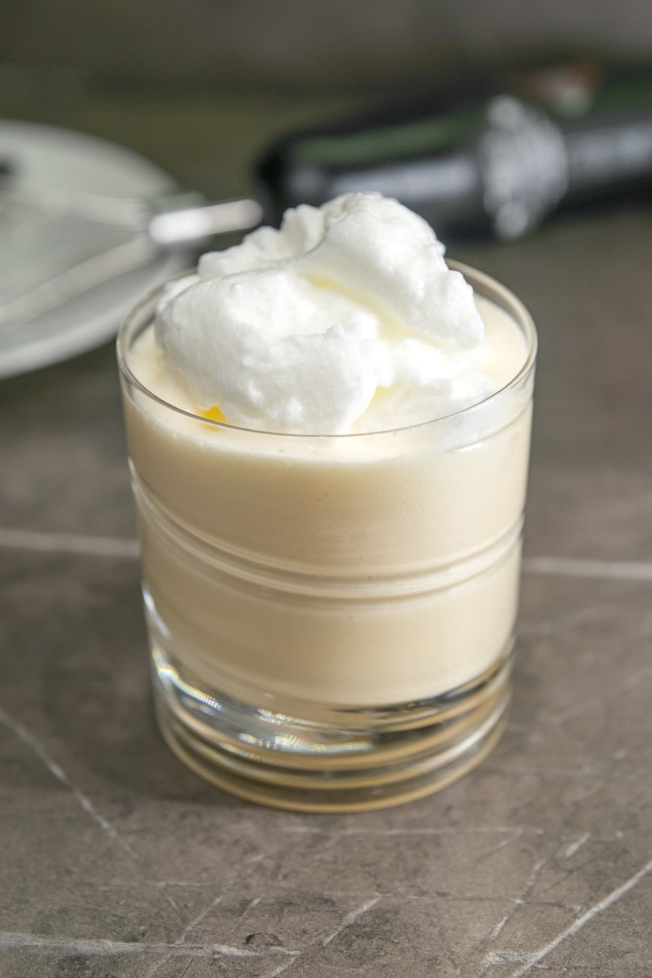 50 мл желтков с чайной ложкой сахара взбивали так же, постепенно повышая скорость с 1-й до 25-й. Затем подлили немного сливок и взбивали еще секунд 40 на максимальной скорости.