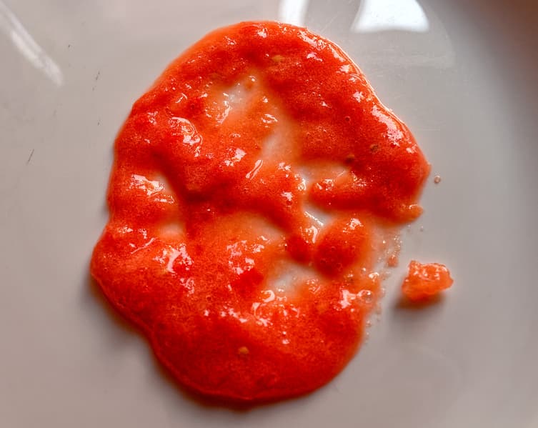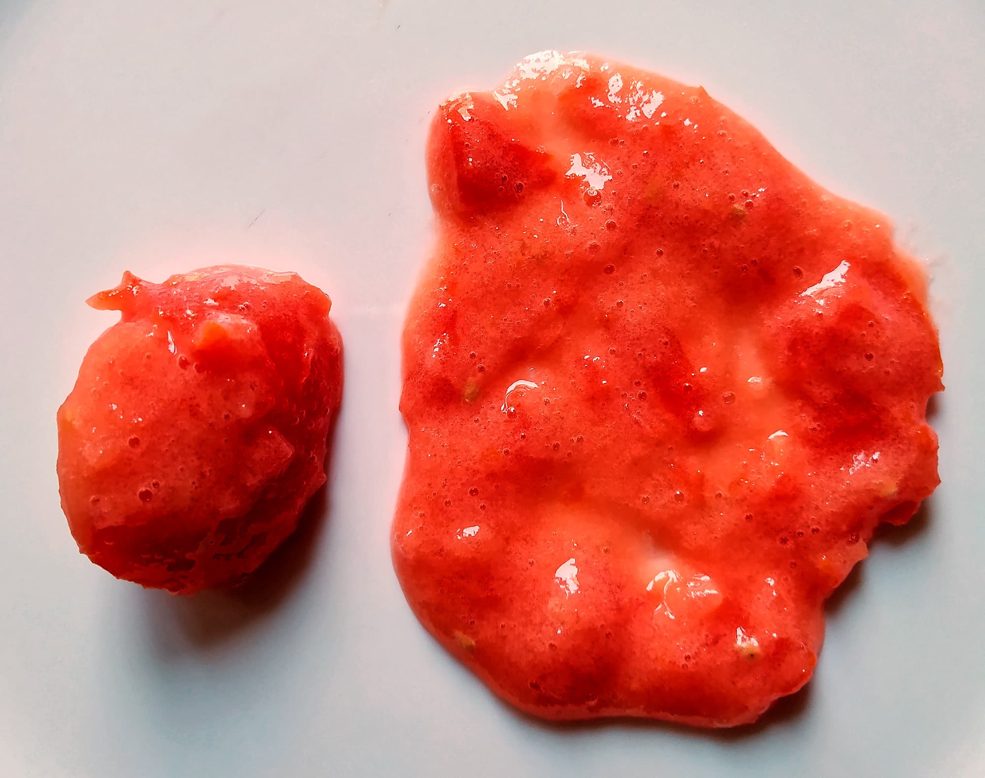 Вернув все обратно в стакан, еще 15 секунд терзали помидоры в режиме Turbo. Крупные куски размололись, но однородности пюре мы так и не добились: в нем все еще плавали небольшие кусочки мякоти. Дополнительные 10 секунд в турборежиме ситуацию не изменили.