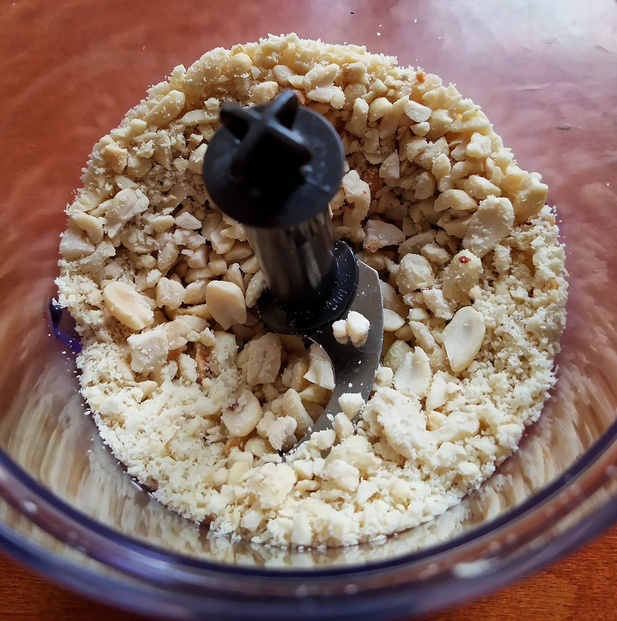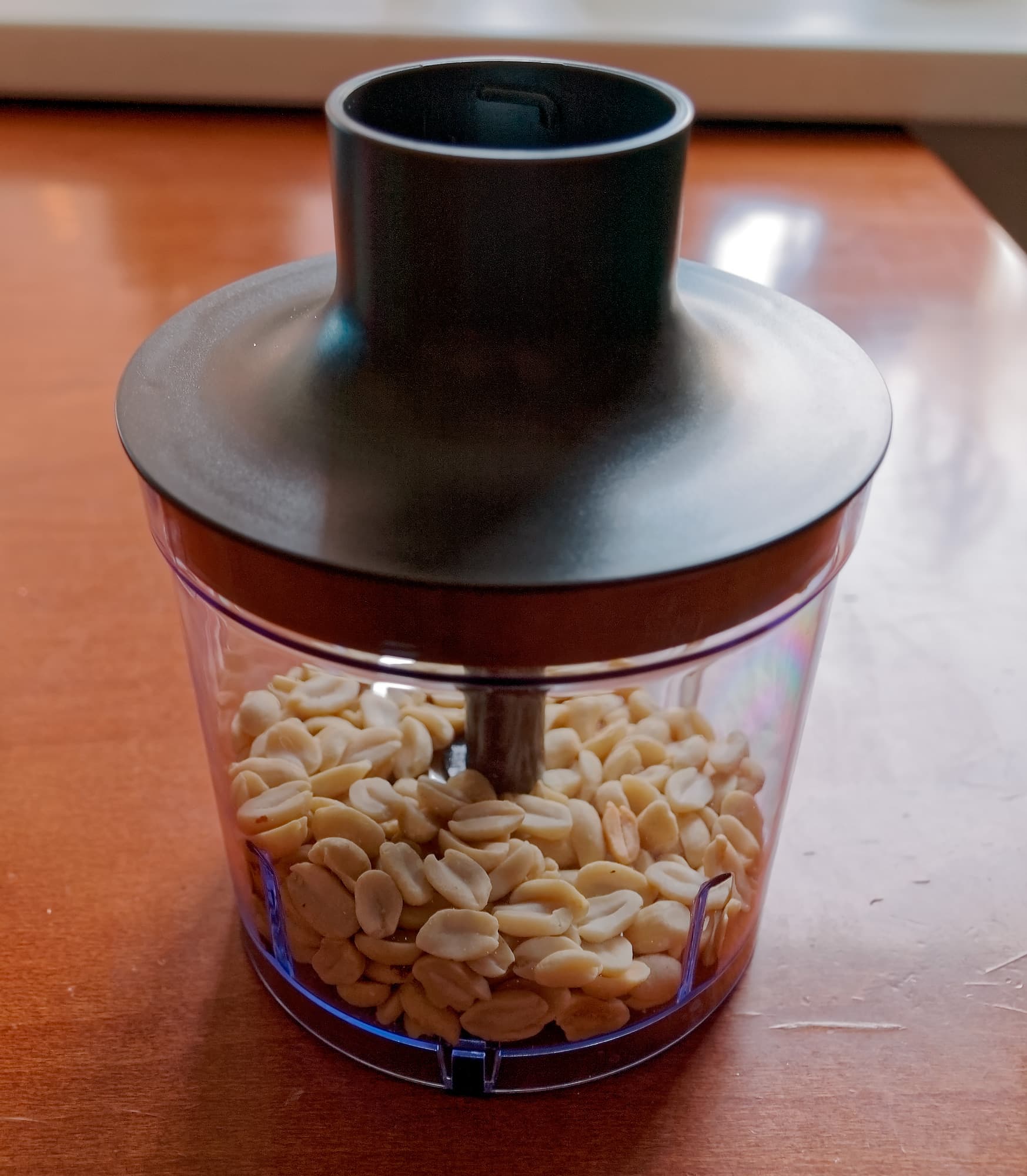 В инструкции орехи не фигурируют в списке продуктов, которые можно измельчать, так что твердый миндаль мы на всякий случай отложили и взяли жареный арахис.