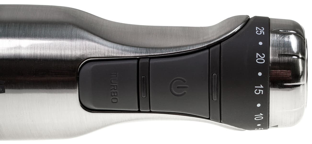 Управление освоит и новичок. Верхняя кнопка — основной режим, в нем можно регулировать скорость вращения ножей с помощью колесика наверху — 25 скоростей, неплохой диапазон.