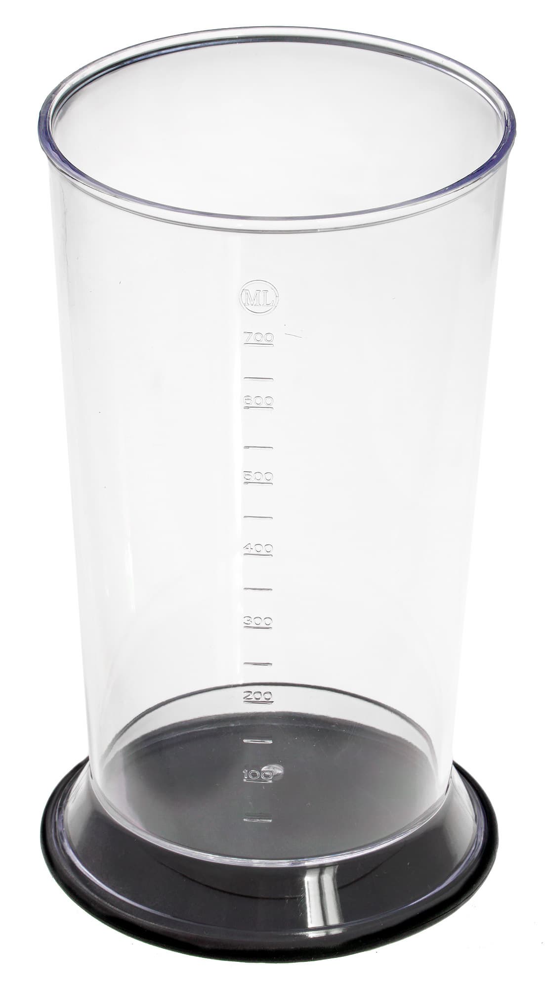 Стакан для смешивания вместимостью 700 мл снабжен рисками с шагом в 50 мл. Пластик тонкий, хлипкий — ждем царапин. Впрочем, история стандартная.
