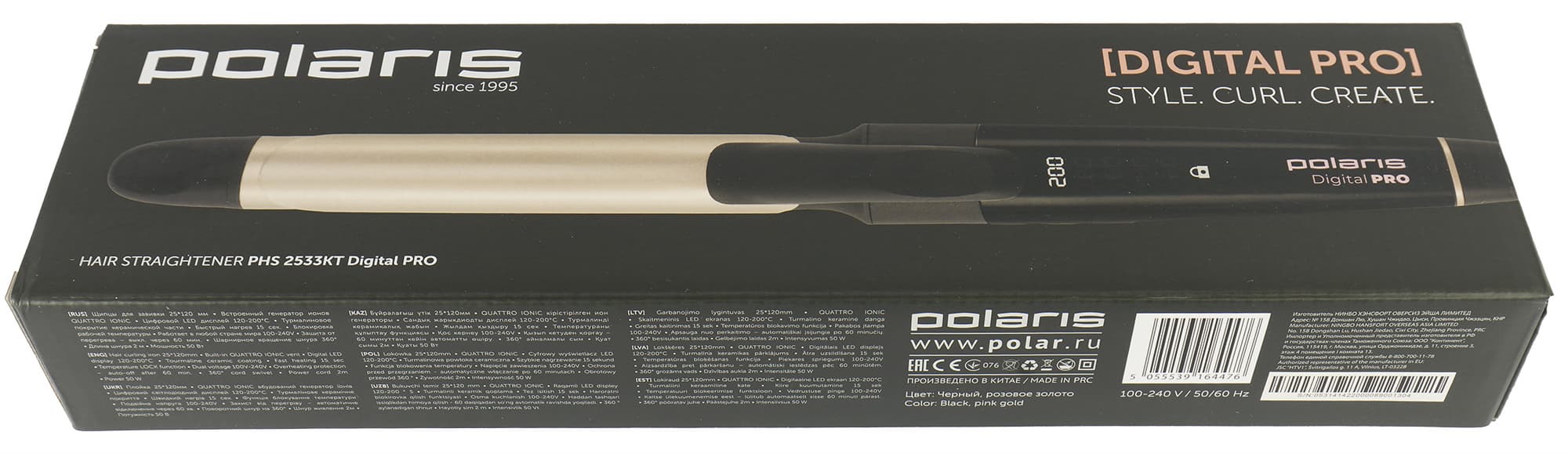 Polaris PHS 2533KT Digital Pro создан в том же стиле, что и предыдущий стайлер. Все те же обтекаемые формы, те же приятные на ощупь материалы и стильный дизайн.