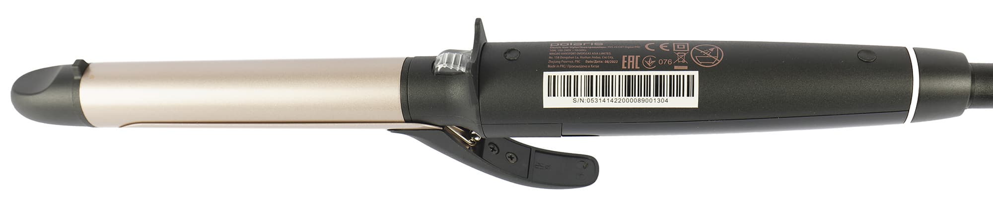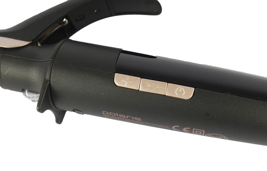Щипцы хорошо ложатся в руку, кнопки управления приходятся четко под большой палец, если пользователь правша и под указательный, если левша. Корпус не собирает на себе отпечатки пальцев. Весит прибор немного, всего 270 г. Сверху в ручку интегрирован LED-дисплей, отображающий выбранный температурный режим.