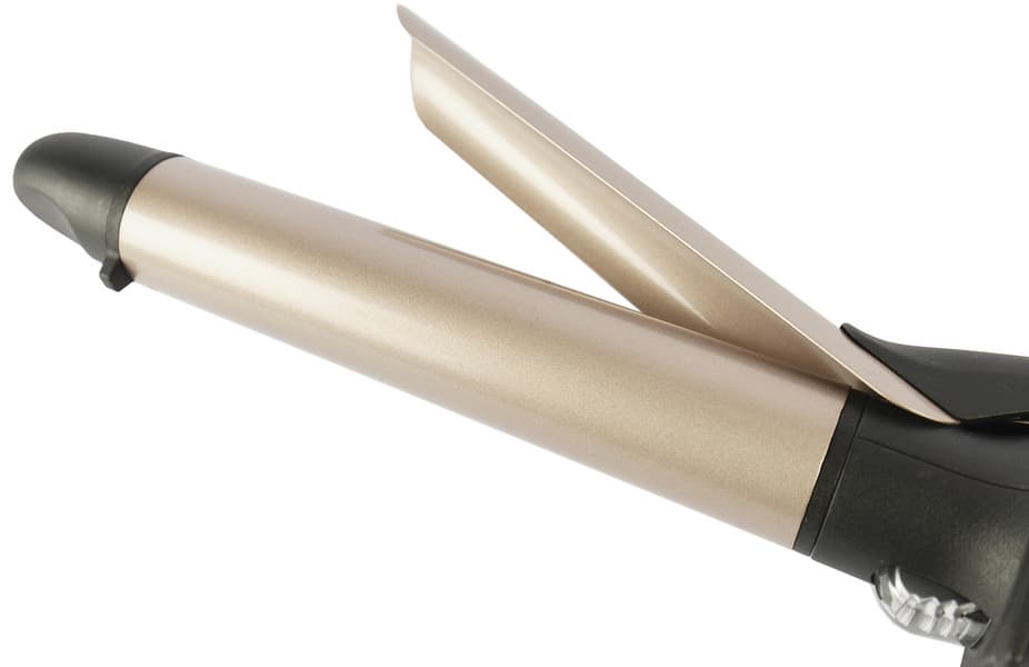 Зажим для волос оснащен удобным ненагревающимся рычагом, выполненным из матового пластика. Наконечник стержня нагрева сделан из того же пластика и также термоизолирован.