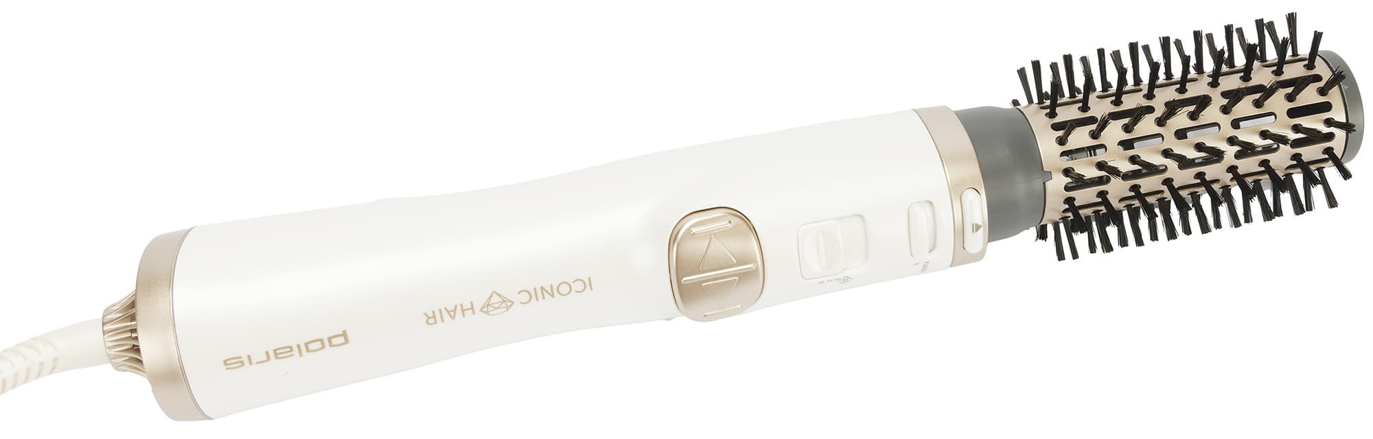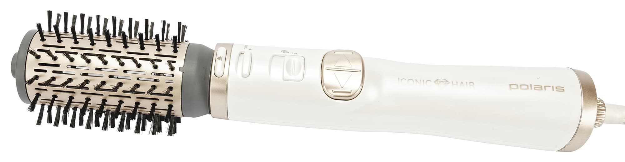 Polaris PHSB 1122Ri — это фен и одновременно расческа с автовращением для укладки волос. Устройство комплектуется двумя видами насадок-щеток и концентратором, а также оснащено генератором ионов для снятия с волос статического электричества и придания локонам мягкости и гладкости.