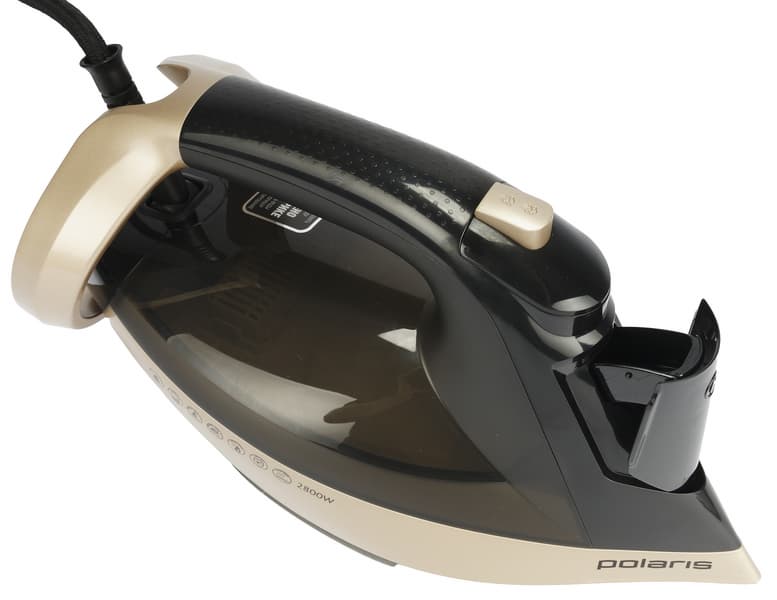 Но вся прочая конституция прибора выглядит вполне привычно. У утюга аккуратные обтекаемые формы и он выполнен в сдержанной цветовой гамме черных и бежево-золотых оттенков.