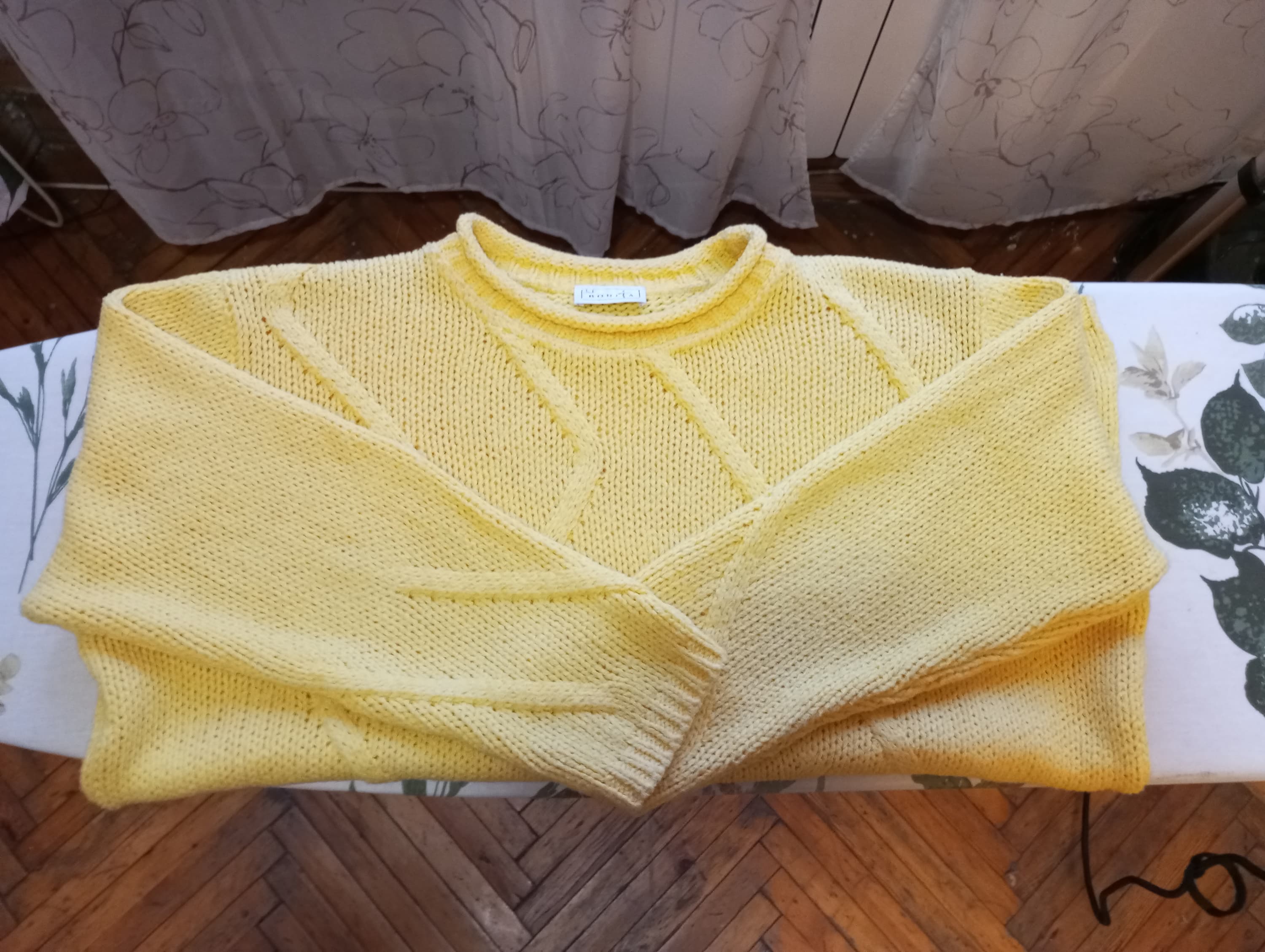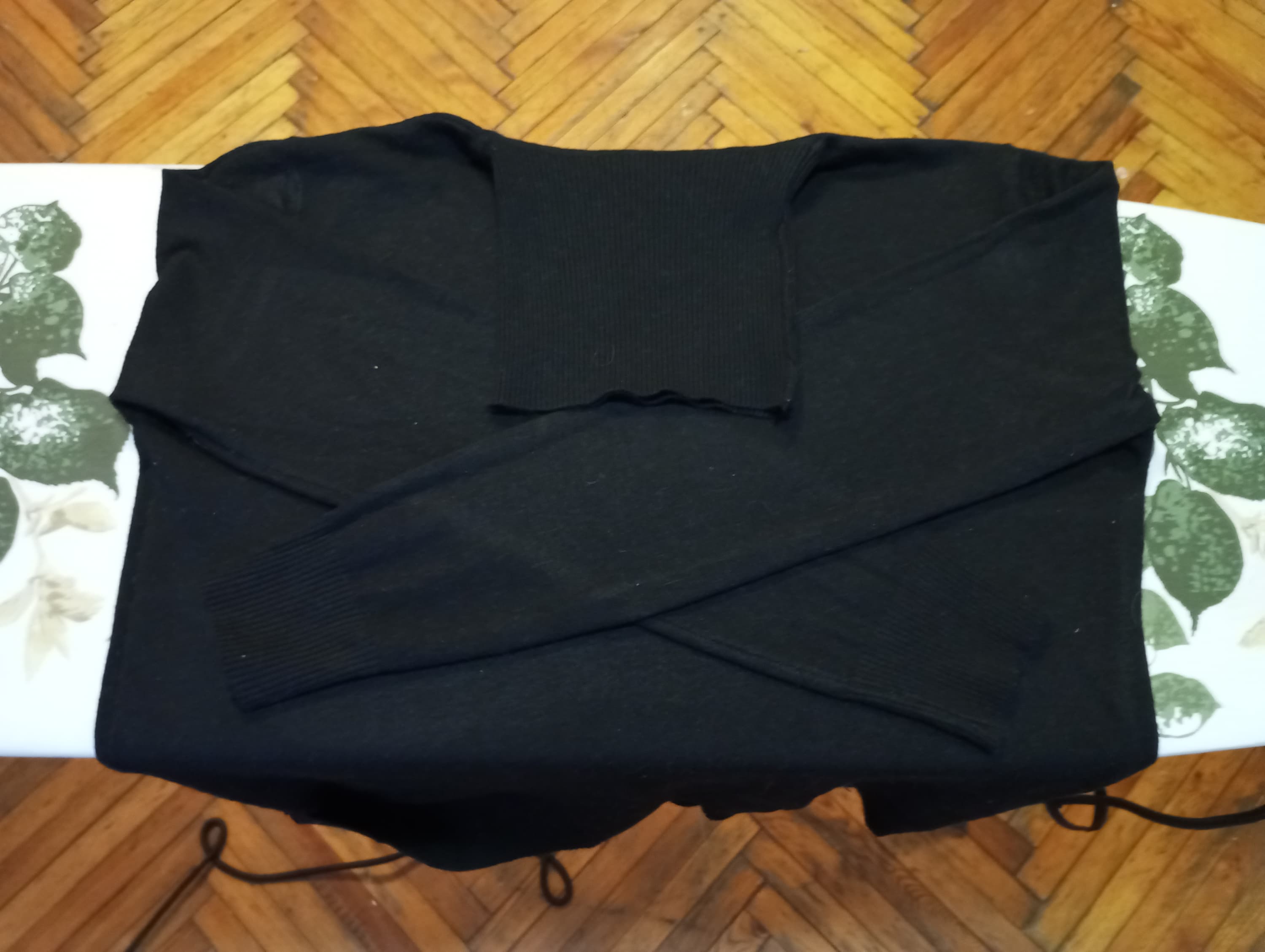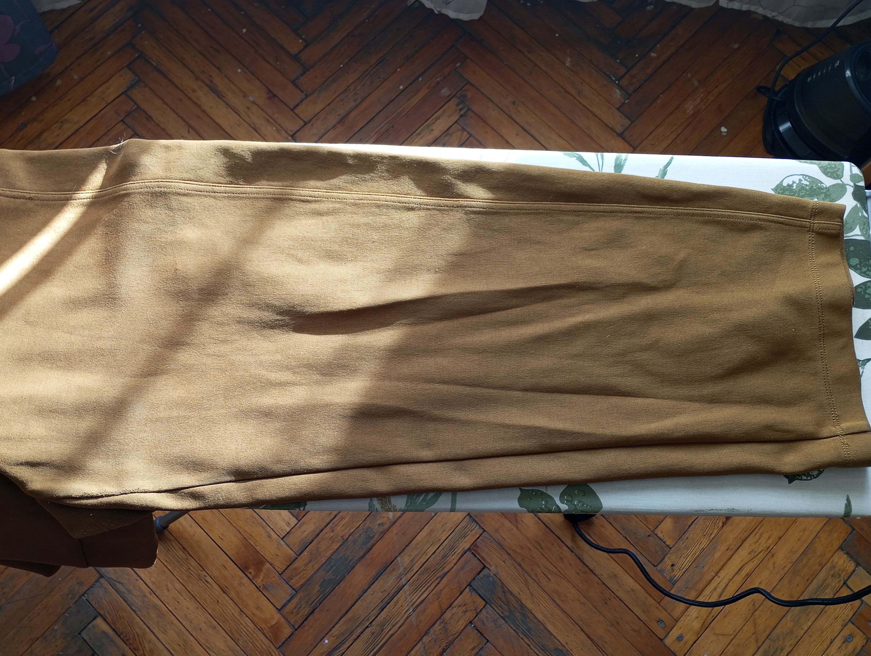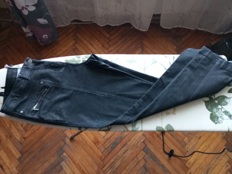 Упрямая, легко мнущаяся ткань с заломами после стирки. Сложность кроя добавляет специфики в обработке таких вещей, плюс требуется максимальный режим и особая деликатность. Тестировали разбрызгивание и паровой удар. На итоговом снимке видна небольшая заглаженность ткани, результат предсказуемый, но уступающий отпариванию.