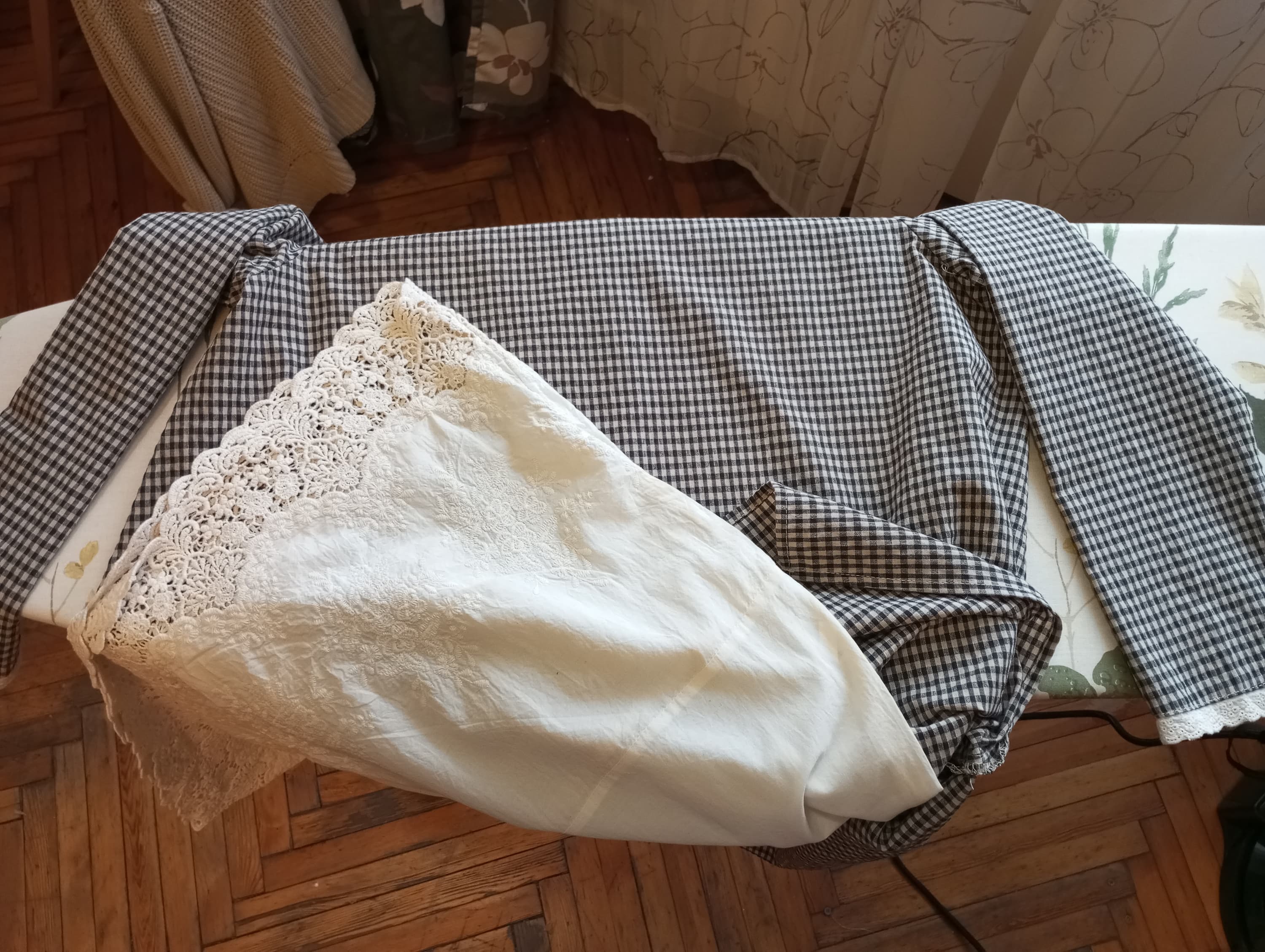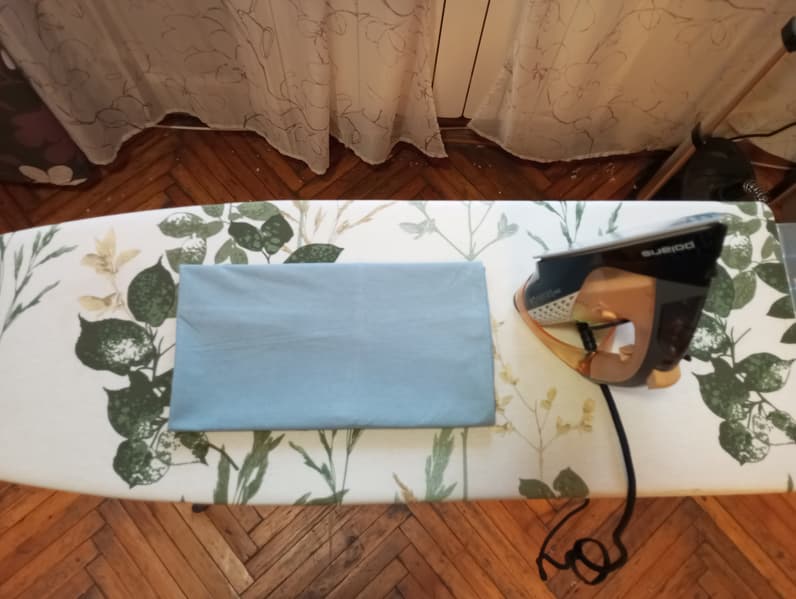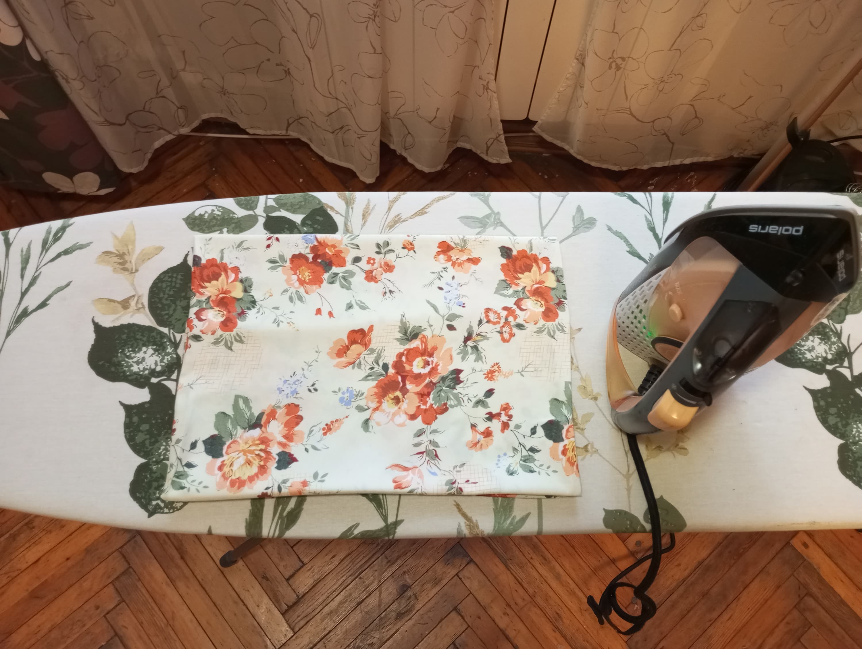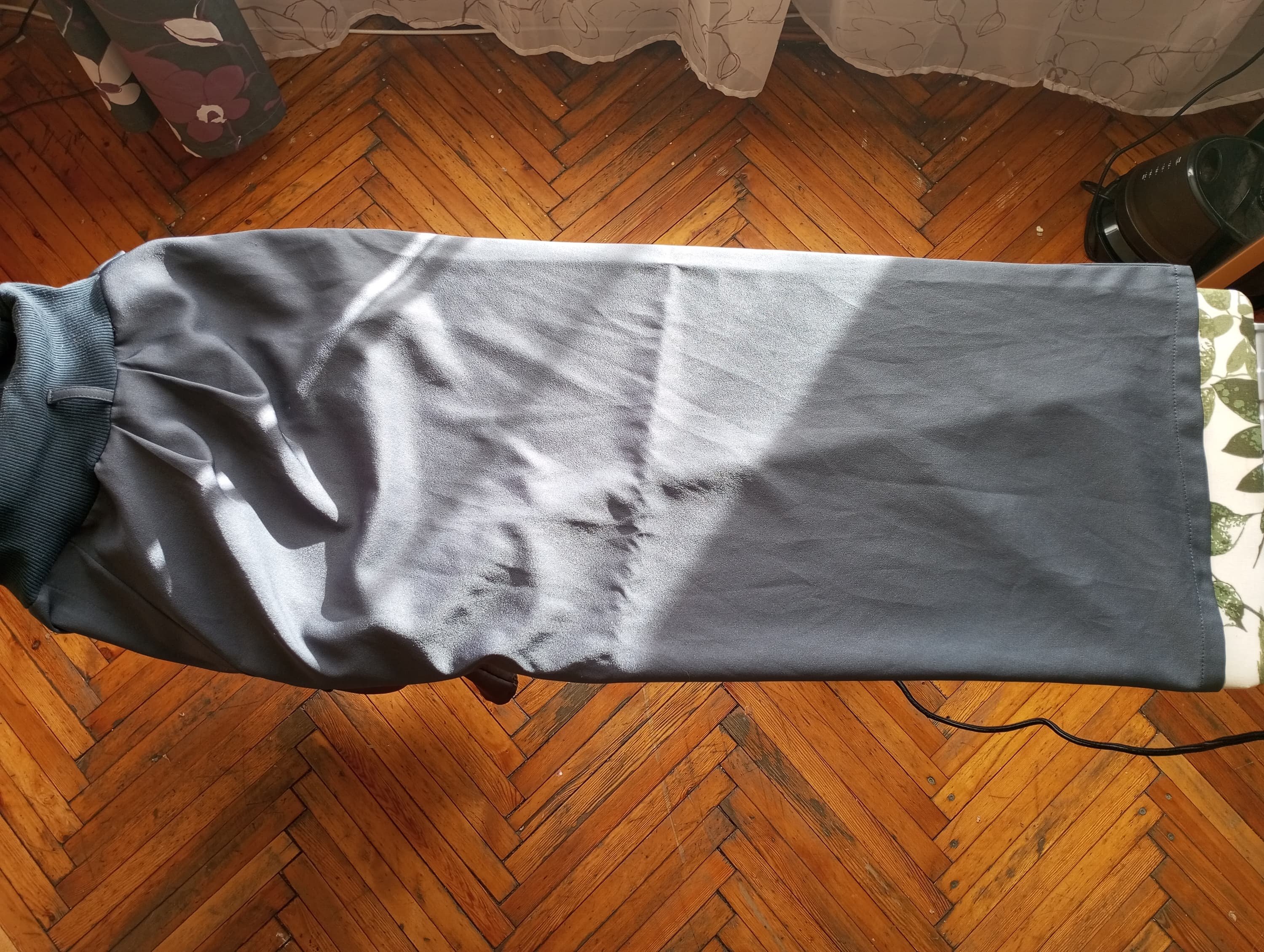 Двойная ткань, сложность кроя, сочетание хлопка и льна — платье после стирки. Важно было понять, как утюг справится с нагрузкой, не засалит ли швы и что потребуется для наилучшего результата. Нижнюю, льняную часть прогладили отдельно, использовали максимальный режим и паровой удар.