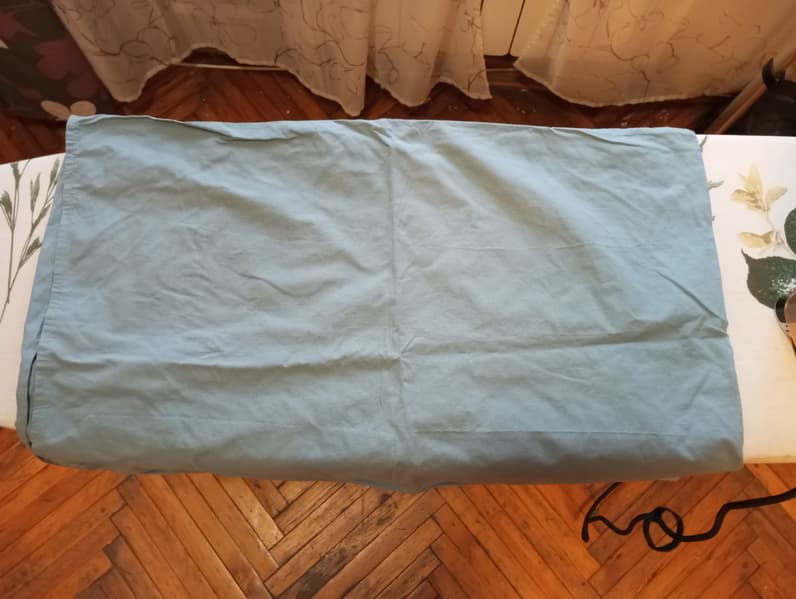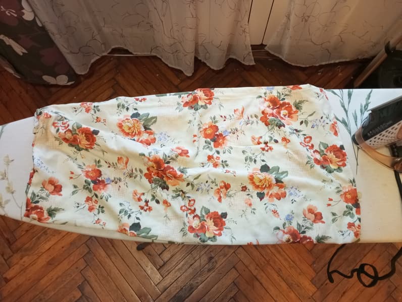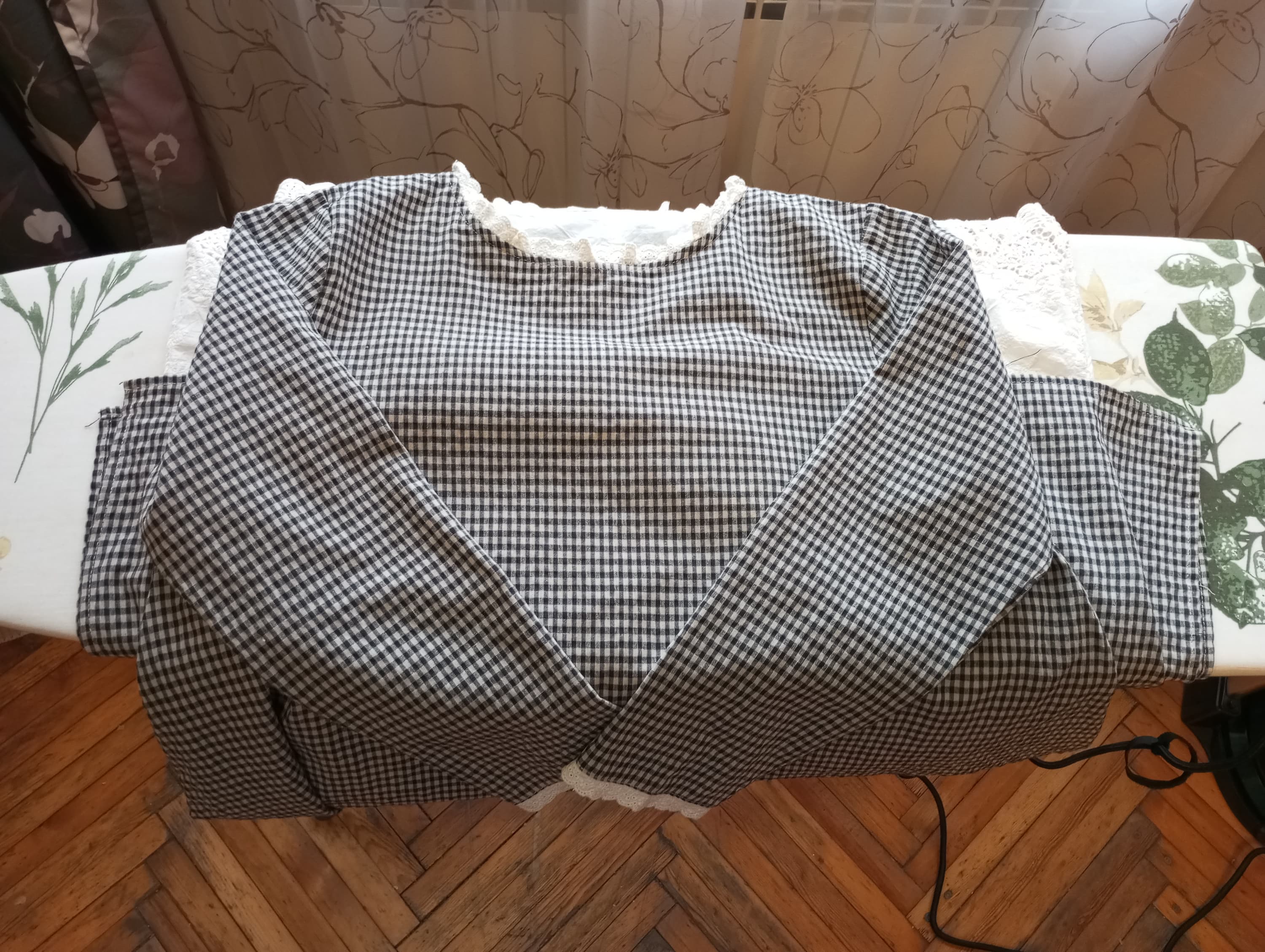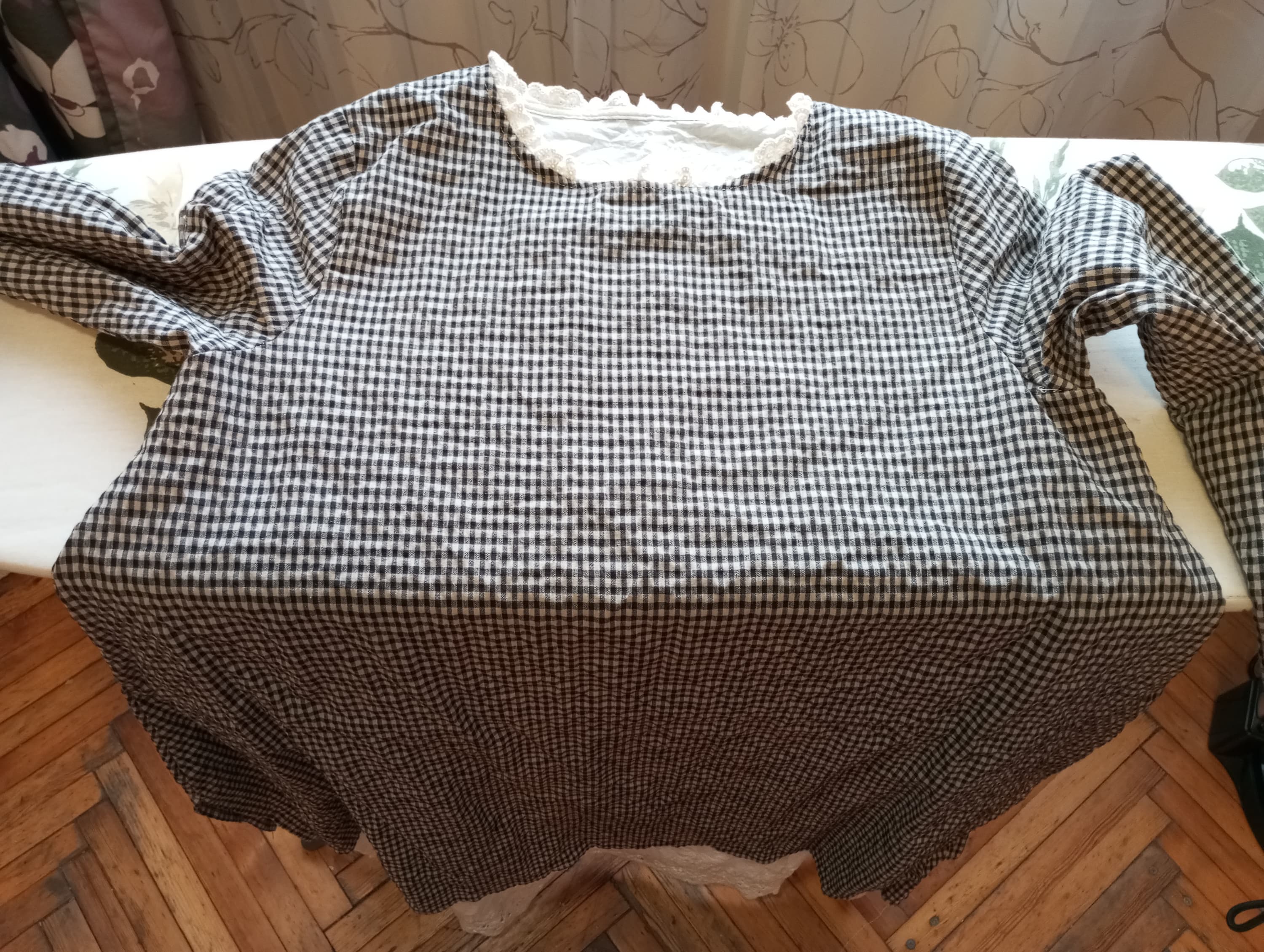 Двойная ткань, сложность кроя, сочетание хлопка и льна — платье после стирки. Важно было понять, как утюг справится с нагрузкой, не засалит ли швы и что потребуется для наилучшего результата. Нижнюю, льняную часть прогладили отдельно, использовали максимальный режим и паровой удар.