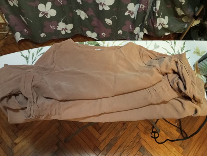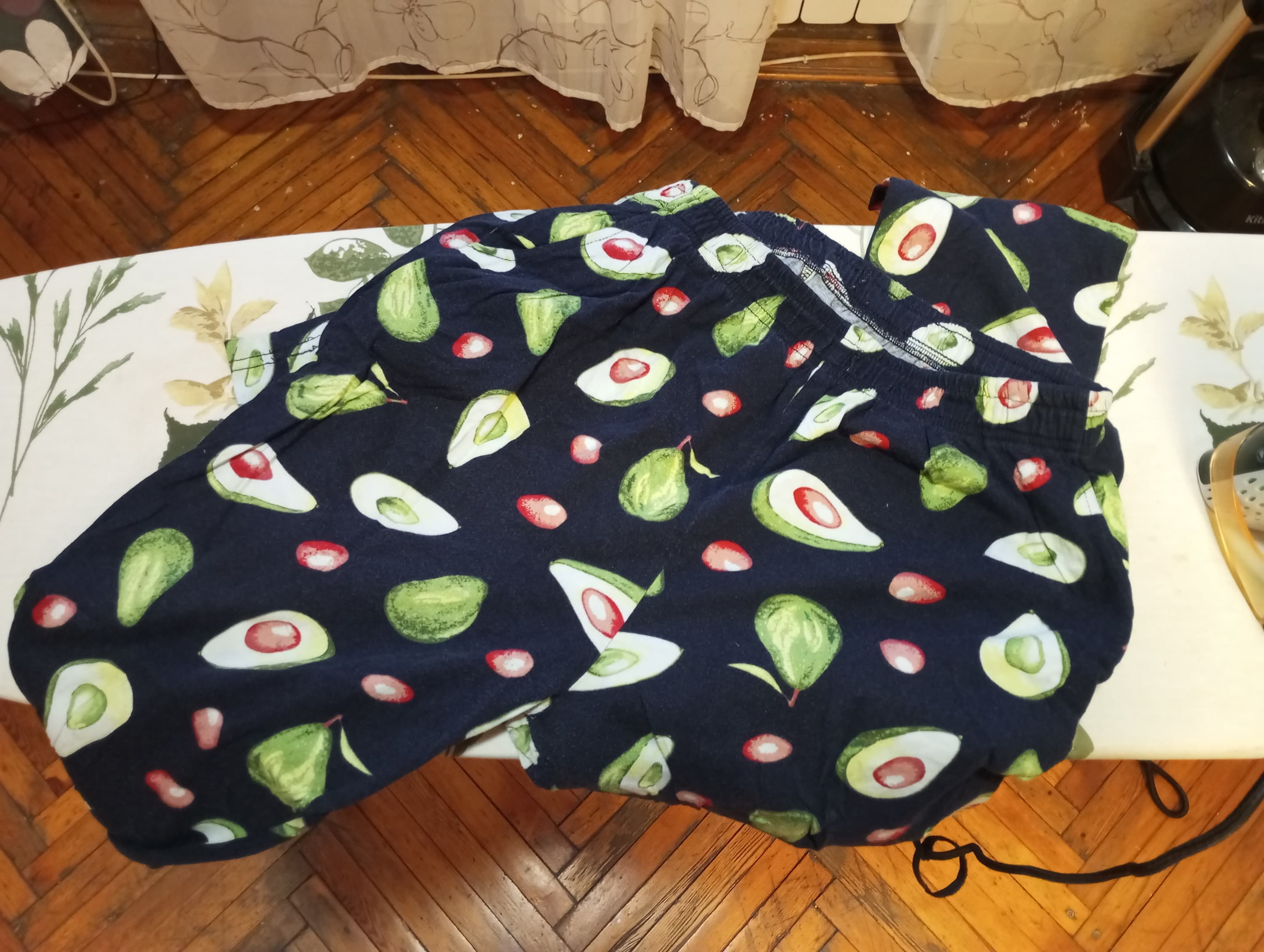 Комфортные домашние костюмы и пижамы из подобной ткани после глажки части теряют в цвете. Выбрали костюм для теста, использовали средний режим, получили неповрежденный цвет.
