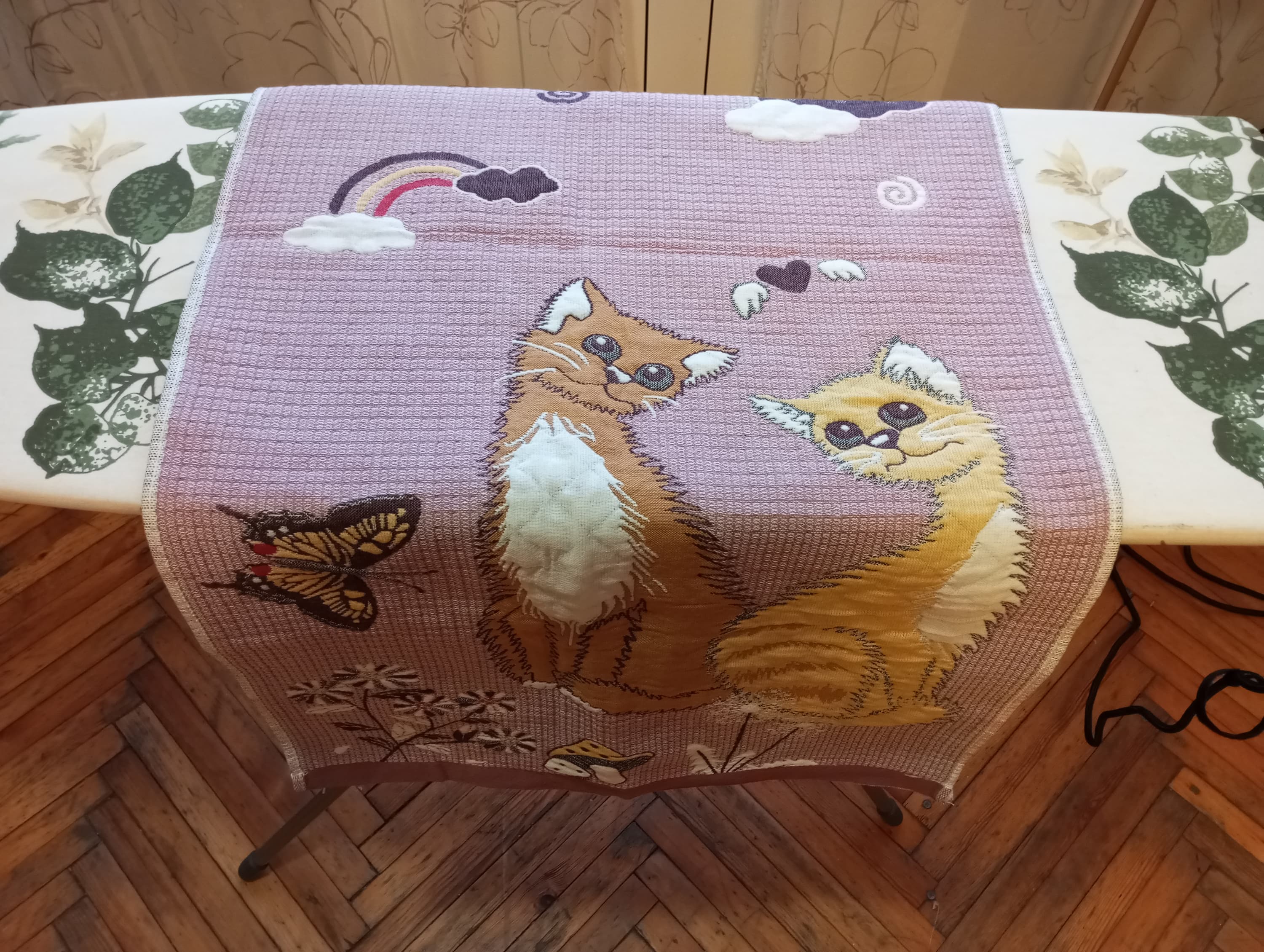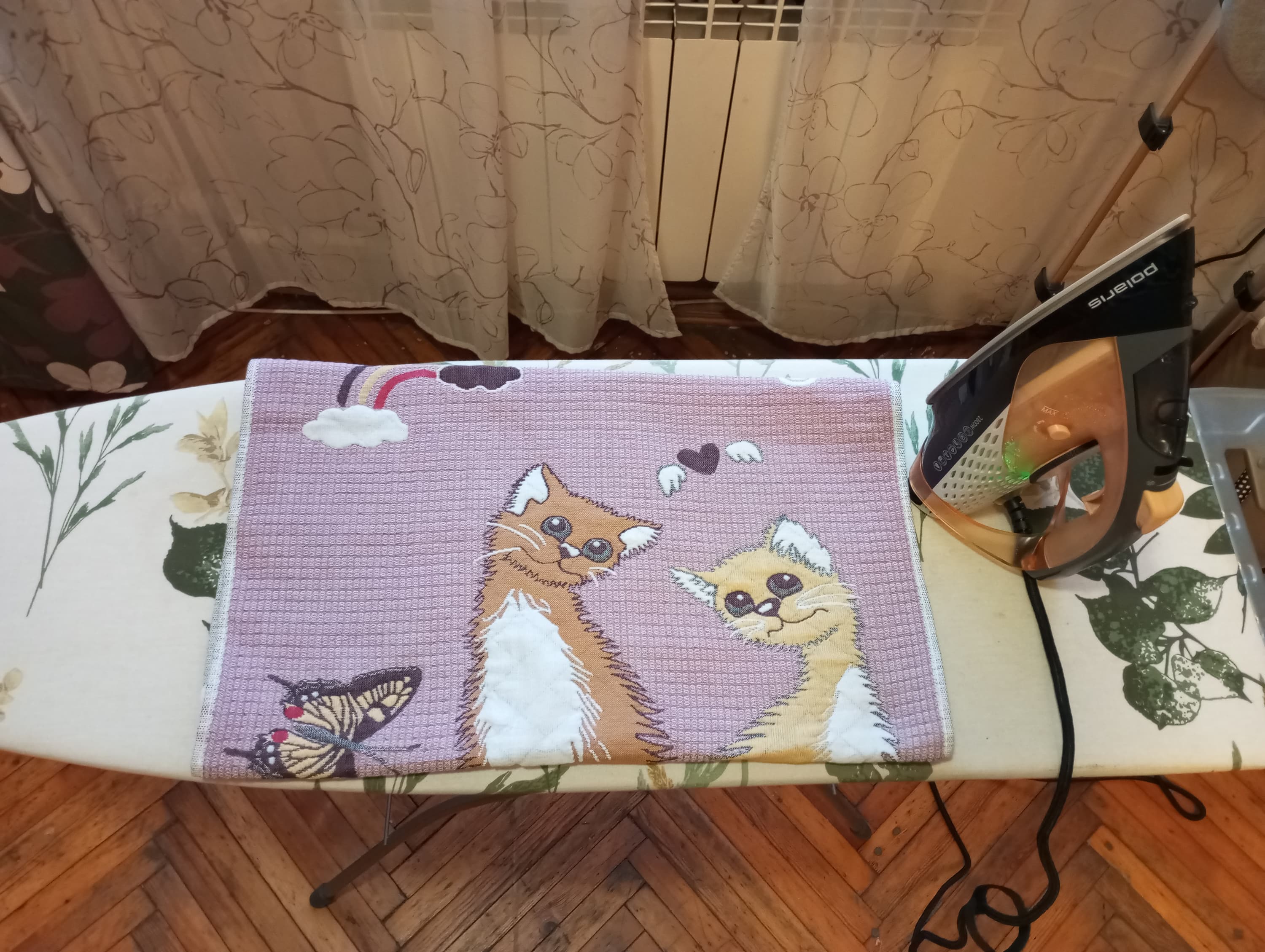 Вафельная ткань просит не только горячей обработки, но и отпаривания, чтобы устранить запахи, которые легко впитывает. Парили на максимальном режиме, на обработку ушло менее 30 секунд.
