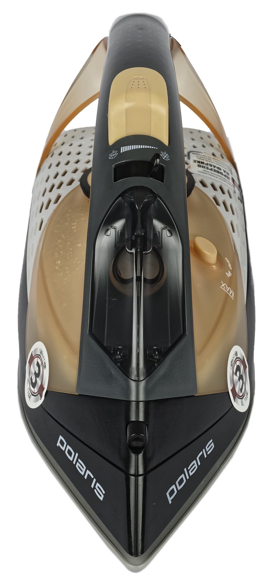 Весит Polaris PIR 2860AK 3m полтора килограмма, не сильно много для большого прибора, рука привыкает к весу довольно быстро, а после нескольких раз утюг ощущается весьма комфортно. Тестировали на подростке и пожилых родителях. Тинейджер так и не нашел к чему придраться, а 73-летняя леди изначально была позитивно настроена к современным моделям, объясняя это механической памятью от еще металлических утюгов.