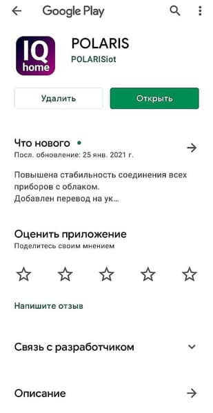 При сканировании QR-кода смартфоном мы сразу попадаем в App Store или Google Play для скачивания приложения IQ Home. Там можно сразу почитать отзывы и вопросы о приложении и приборах Polaris IQ Home — это поможет определиться с выбором, если вы находитесь в магазине и прибор еще не куплен.