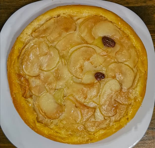 Тесто сделали по типу блинного жидкого, очень сладкого. Аккуратно опускали порциями яблоки в тесто, доставали, стряхивали лишнее и плотно укладывали ломтики в чашу мультиварки, смазанную маслом. В середину яблок уложили изюм. Яблоки плотно прижали, так, чтобы между ломтиками не оставалось пространства. Вылили сверху пару ложек теста, поставили в мультиварку на режим «выпечка» на 2 часа.