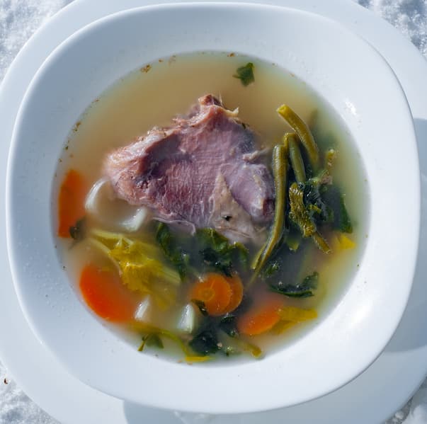 Для супа мы взяли ногу индейки и варили ее на программе «суп» в течении 2 часов. После полной готовности мяса положили в бульон морковь, сельдерей и зеленую фасоль. Поставили вариться не меняя программу еще на 20 минут. За 3-5 минут до готовности положили в суп шпинат.