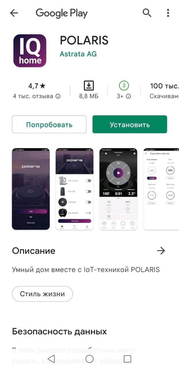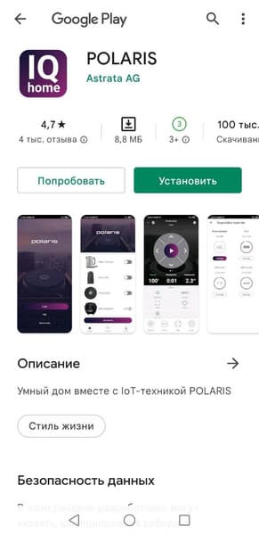 Для подключения к системе Polaris IQ Home нужно установить приложение.