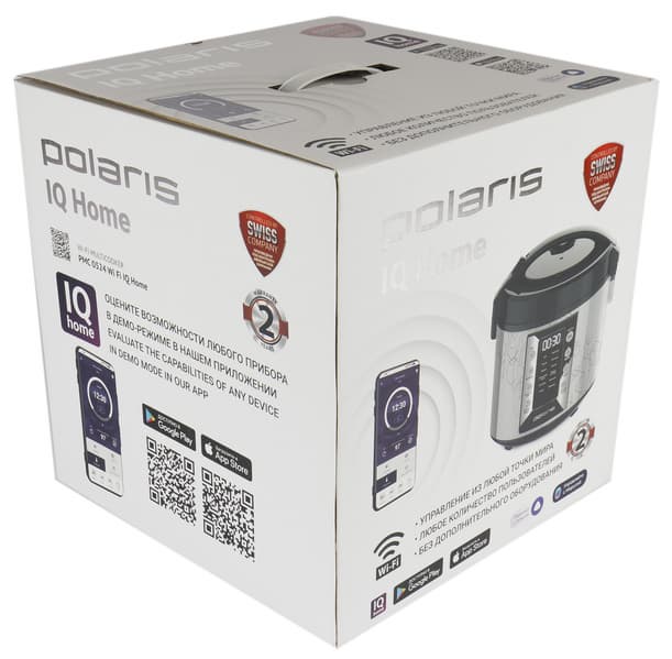 Polaris PMC 0524 Wi-Fi IQ Home — простой, но очень полезный кухонный прибор. Мультиварка комплектуется чашей с антипригарным покрытием, черпаками и емкостью для готовки на пару́. Управление прибором достаточно простое и возможно как в ручном варианте, так и через приложение в смартфоне или голосового помощника.