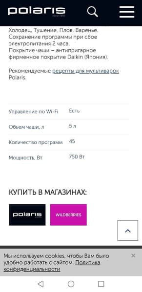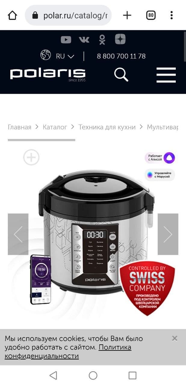 У нас на тестах мультиварка Polaris PMC 0524, с функцией управления по Wi-Fi с помощью приложения IQ Home или голосового помощника.