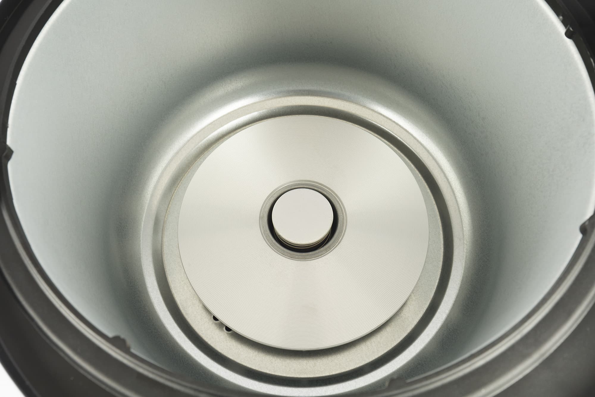 Внутри прибора находится нагревательный элемент с датчиком температуры. Нагревательный элемент высоко поднят над дном корпуса, это удобно при очистке прибора от случайно попавших в него кусочков пищи или других предметов.