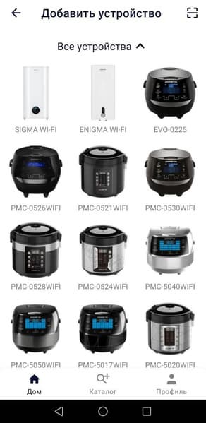 После сопряжения устройства с сетью настроить профиль мультиварки в приложении.
