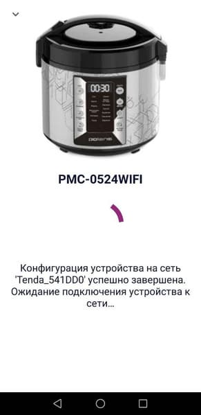 В приложении выбрать нужную модель или включить обнаружение устройства. Затем выбрать сеть и подтвердить пароль. На мультиварке, одновременным нажатием кнопок «Часы» и «Минуты» запустить Wi-Fi.