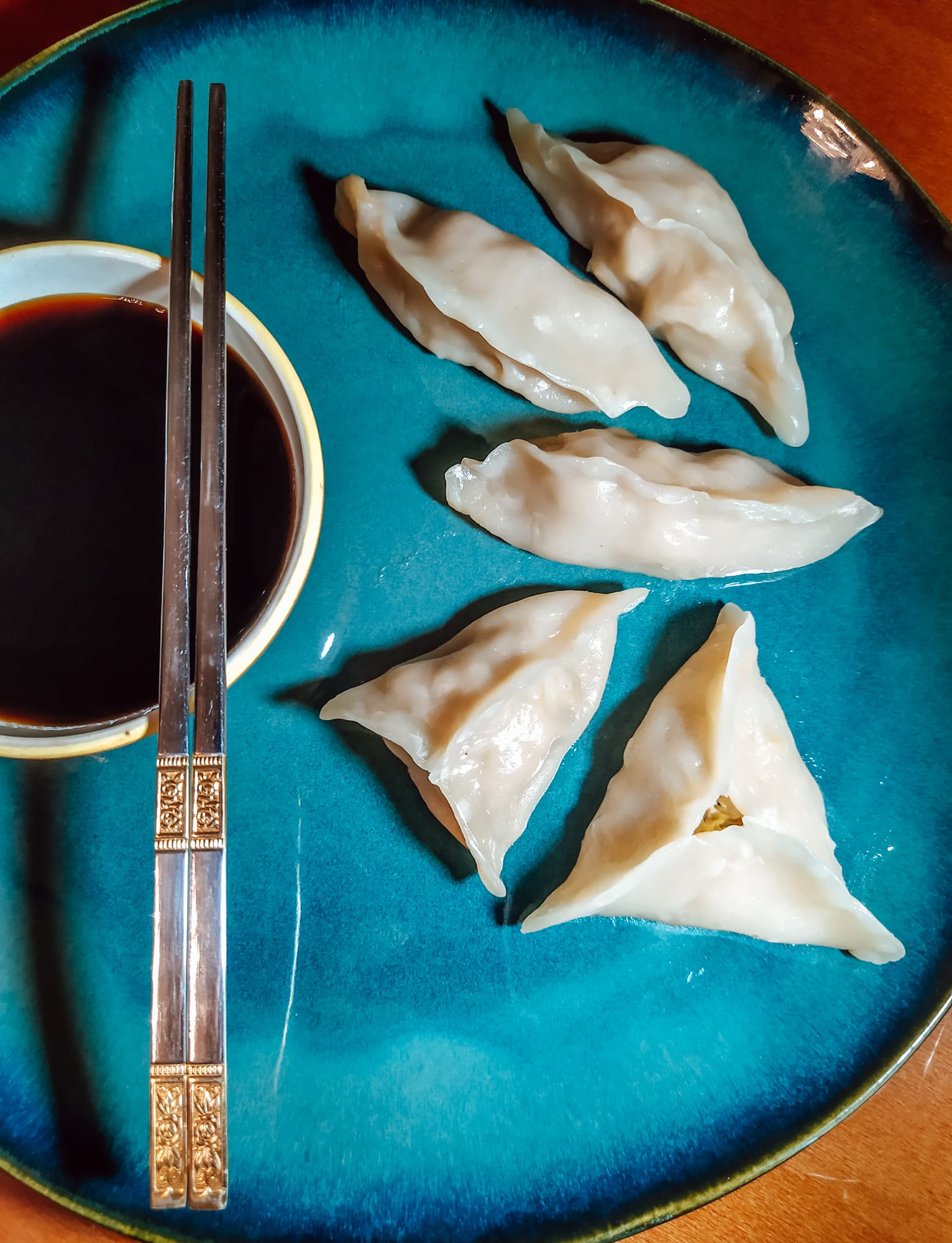 И действительно: сочную начинку из свинины и капусты обволакивает идеально сваренное тесто (хоть мы и раскатали его слишком толсто).