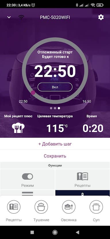 Если вы решили не пользоваться автоматическими режимами, а задать свои параметры приготовления, в приложении очень легко запрограммировать каждый этап.