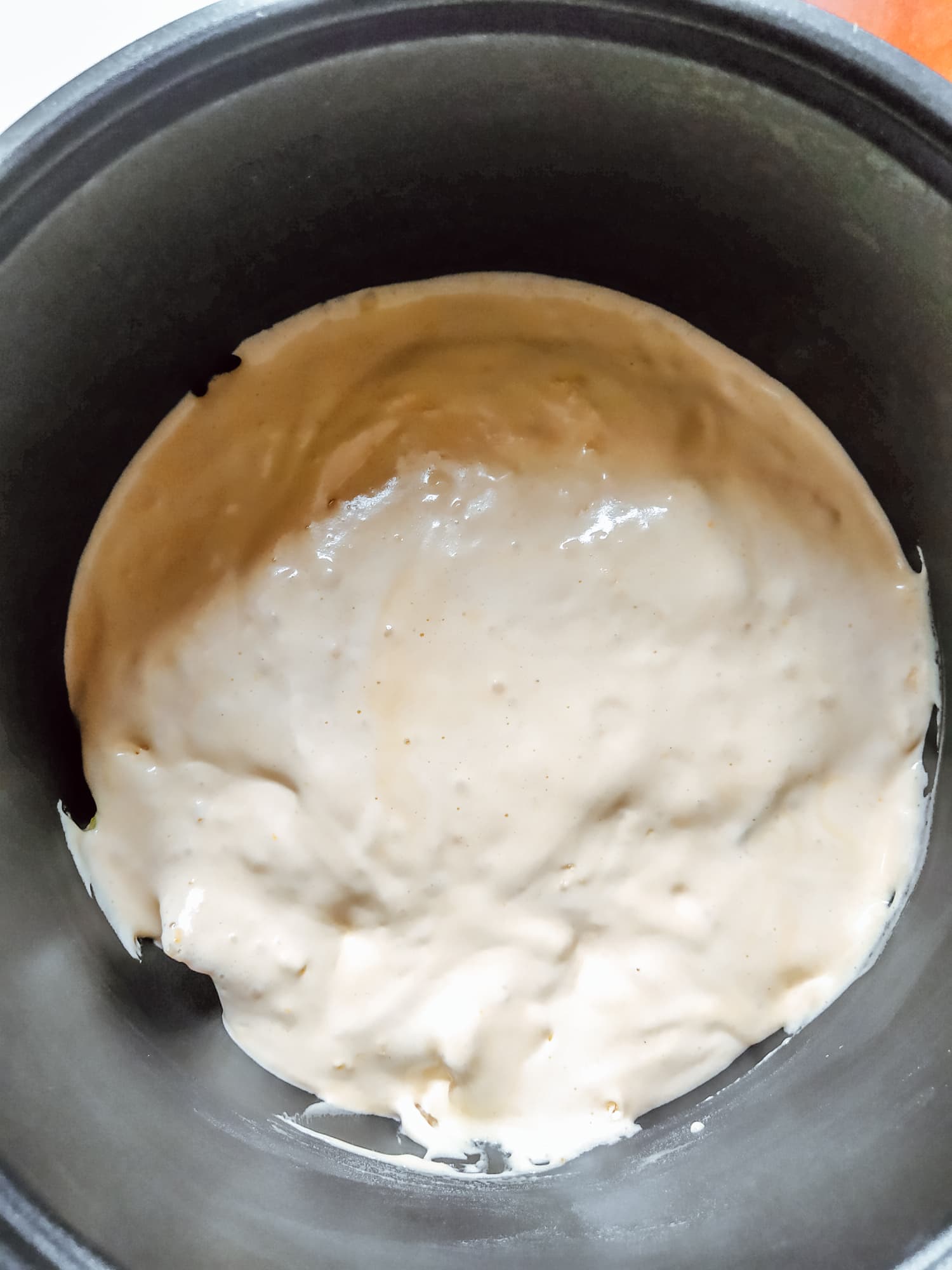 Следом отправилось тесто. Включили мультиварку на 40 минут в режиме «Выпечка».