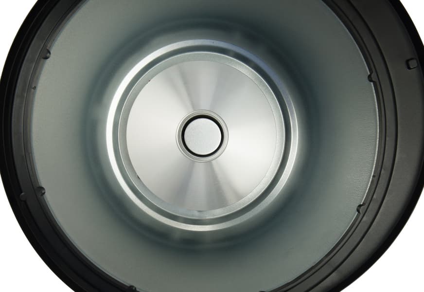 На него устанавливается пятилитровая чаша без ручек. Правда, полезный объем — 3,5 литра, или 10 чашек, о чем нам сообщают риски на стенке. Весит чаша 500 граммов и хлипкой не кажется, антипригарное покрытие гладкое.